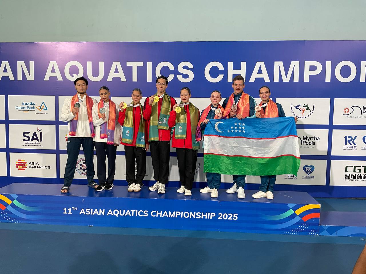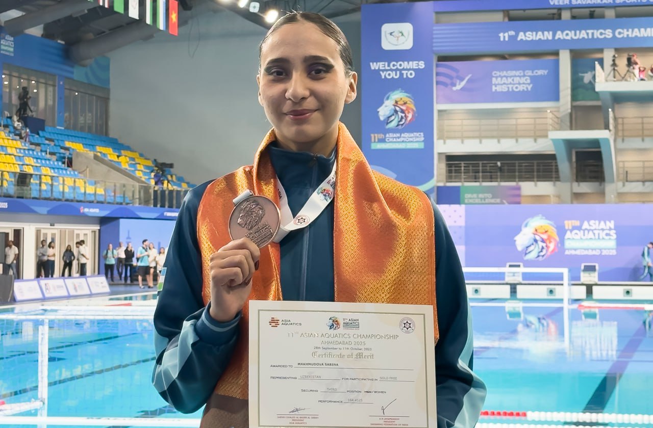 The Asian Aquatics Championships are underway in Ahmedabad, India, where Uzbekistan’s national artistic swimming team delivered an outstanding performance, earning a total of eight medals — 2 gold, 1 silver, and 5 bronze.