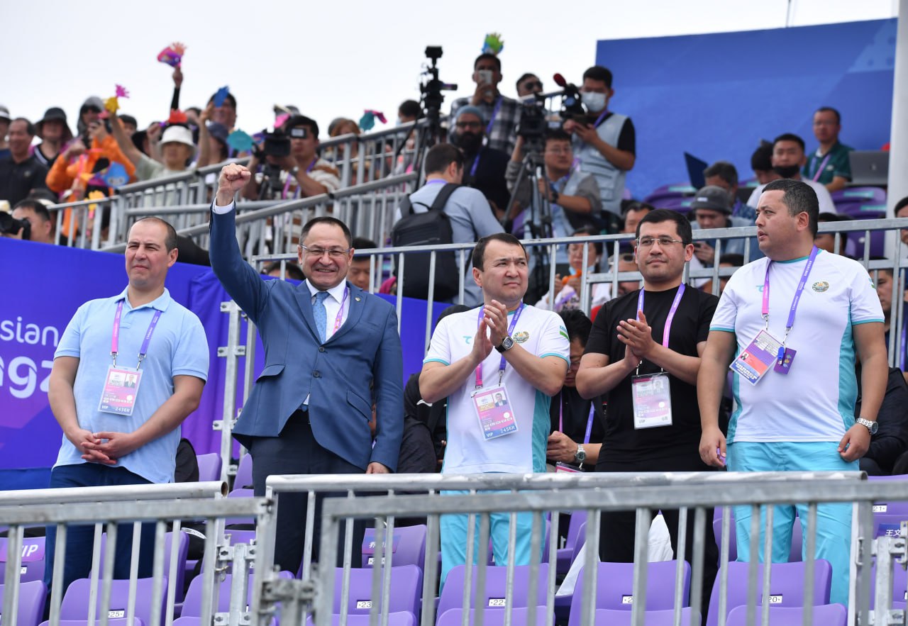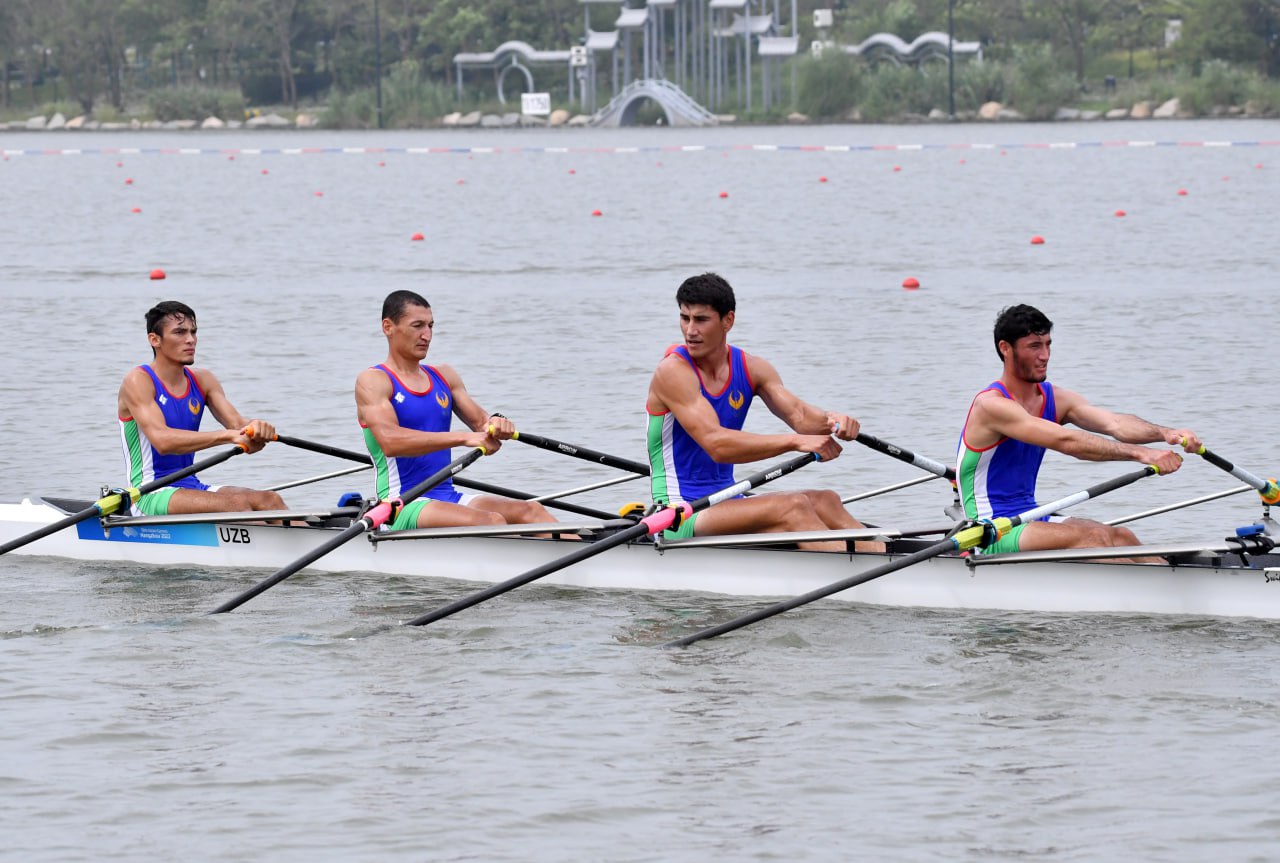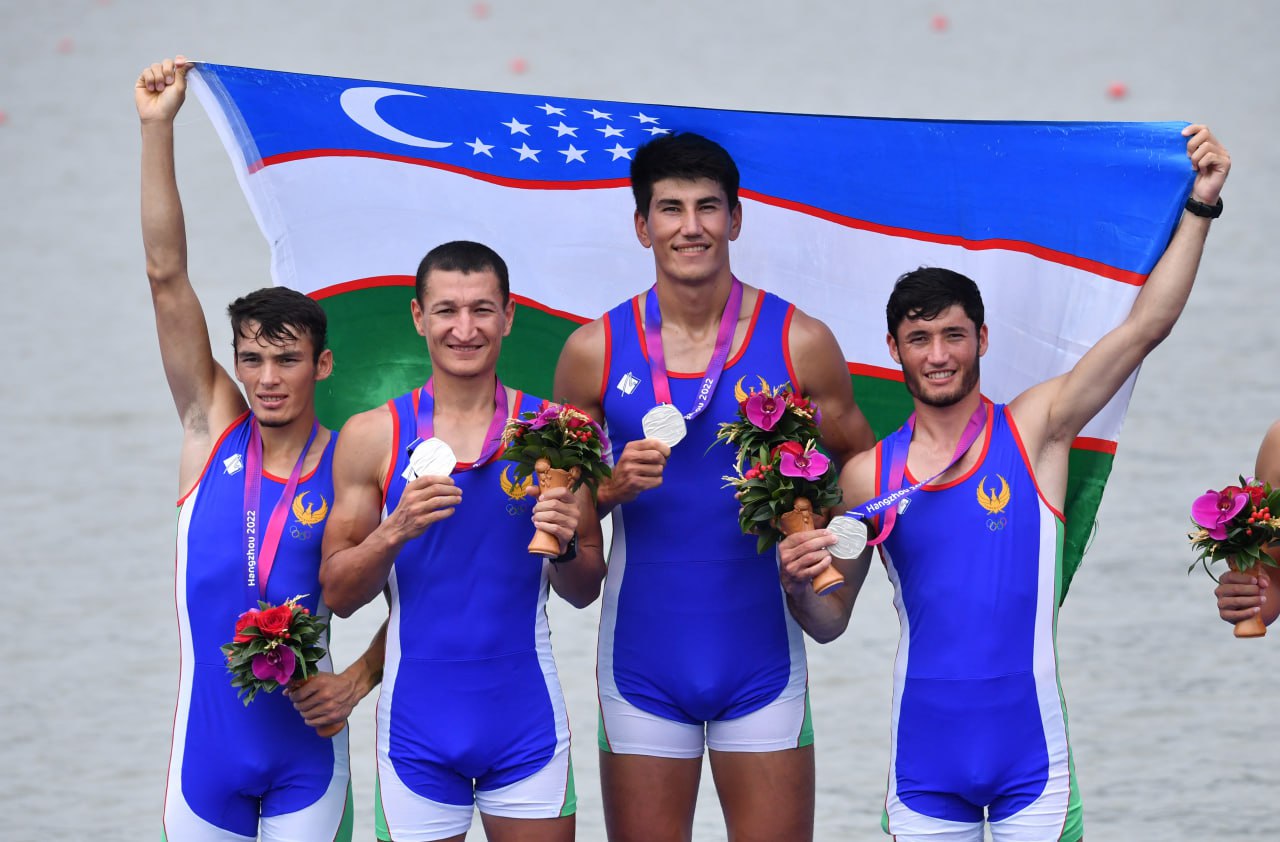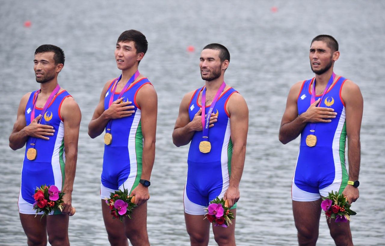 Akademik eshkak eshuvchilarimiz Osiyo oʻyinlaridagi ishtiroklarini yakunlashdi. Sportchilarimiz musobaqa davomida 2 ta oltin, 4 ta kumush va 1 ta bronza medallarini qoʻlga kiritib, mazkur dasturda Xitoydan soʻng ikkinchi oʻrinni egallashdi. Bugun M4- va M4x dasturlarida shohsupaga koʻtarilgan yigitlarimizning chiqishi va taqdirlash marosimidan suratlarni tomosha qiling:
