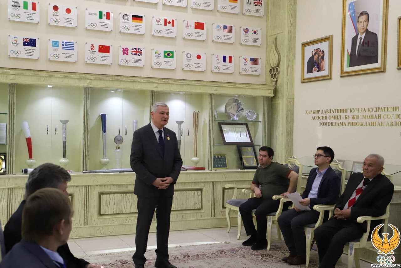 “Avvalambor, Sizlarni yana bir bor Qo‘mitamizda ko‘rib turganimizdan bag‘oyat mamnunmiz. Sizlar bizning ustozimizsiz. Bir necha yil avval Sizlar mamlakatimizda boshlab bergan Olimpiya harakatini bugun biz davom ettirmoqdamiz. Sizlarning yurtimiz sporti rivojiga qo‘shgan hissangiz haqida qancha gapirsak ham oz. Bahodir aka boshchiligidagi faxriylar kengashi jamoasi so‘nggi davrda ancha faol ishlamoqda. Biz ular bilan yonma-yon turib, barcha yordamni ko‘rsatishga tayyormiz”, – dedi Oybek Kasimov.