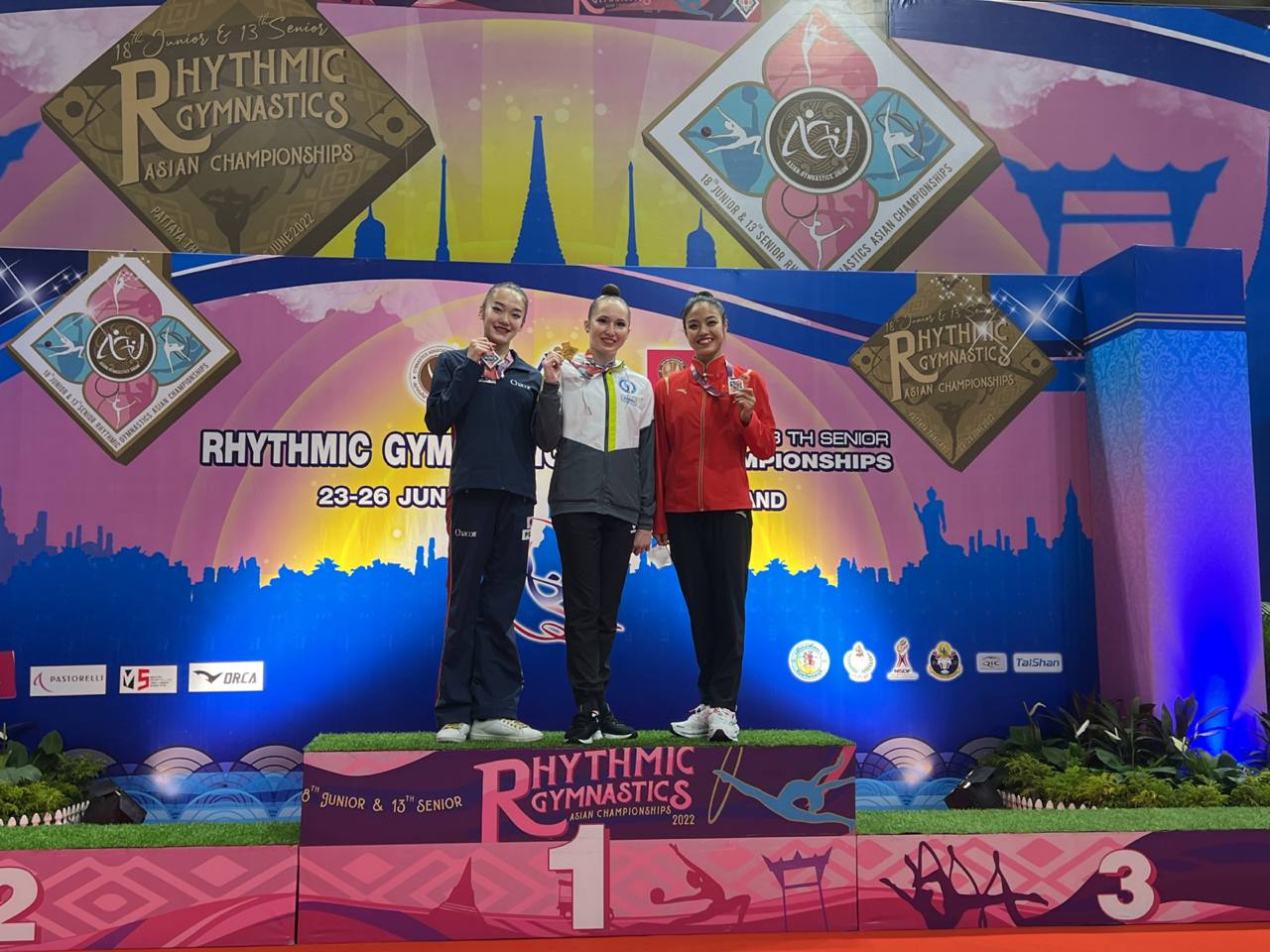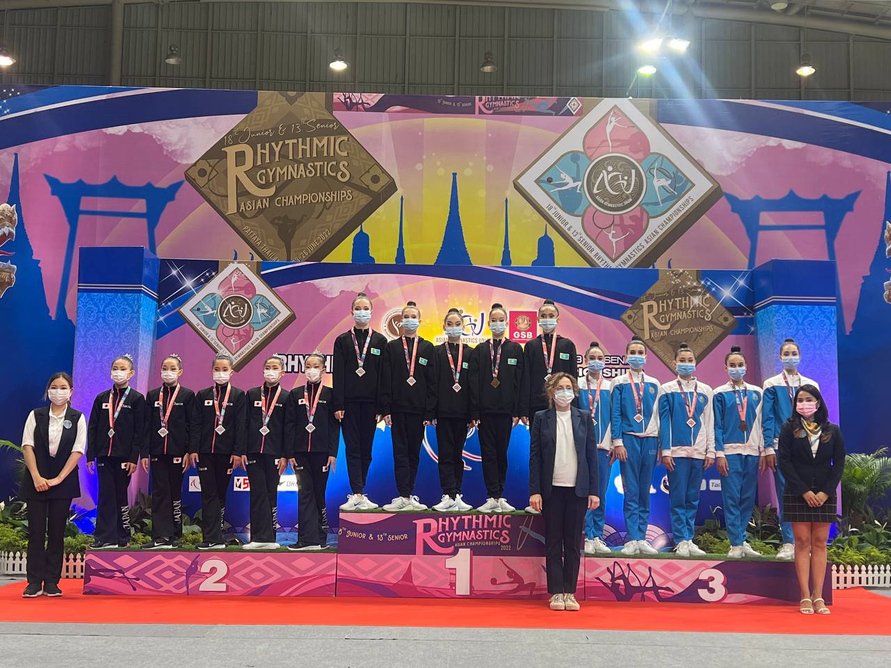Shahzoda Ibragimova, Nargiza Jumaniyozova, Nilufar Aʼzamova, Mumtoza Isʼhoqzoda, Xurshida Abduraufova va Mariya Pakdan iborat jamoamizning 5 halqada bajargan chiqishi kumush medalga loyiq koʻrildi. Anastasiya Saransovaning toʻp bilan, yoshlar jamoamizning (Domenika Damirova, Viktoriya Neskubo, Irodaxon Sodiqova, Diyora Baxtiyorova, Mubina Kamolova va Yasmin Amira Mirzayarova) arqon bilan ijro etgan dasturi esa bronza medallarini keltirdi.