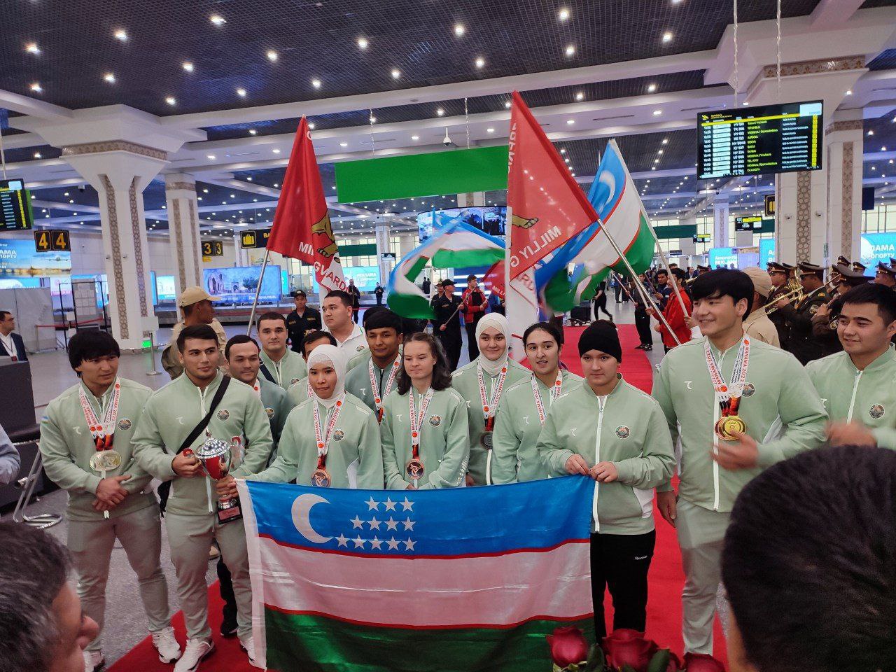 Bugun musobaqada yurtimiz sharafini munosib himoya qilgan sportchilarimiz Toshkentga qaytib kelishdi. Jamoamizni kutib olish marosimida Shahrullo Mahmudov boshchiligidagi sportni rivojlantirish vazirligi hamda O'zbekiston og'ir atletika federatsiyasi vakillari, atletlarimizning yaqinlari ishtirok etishdi.