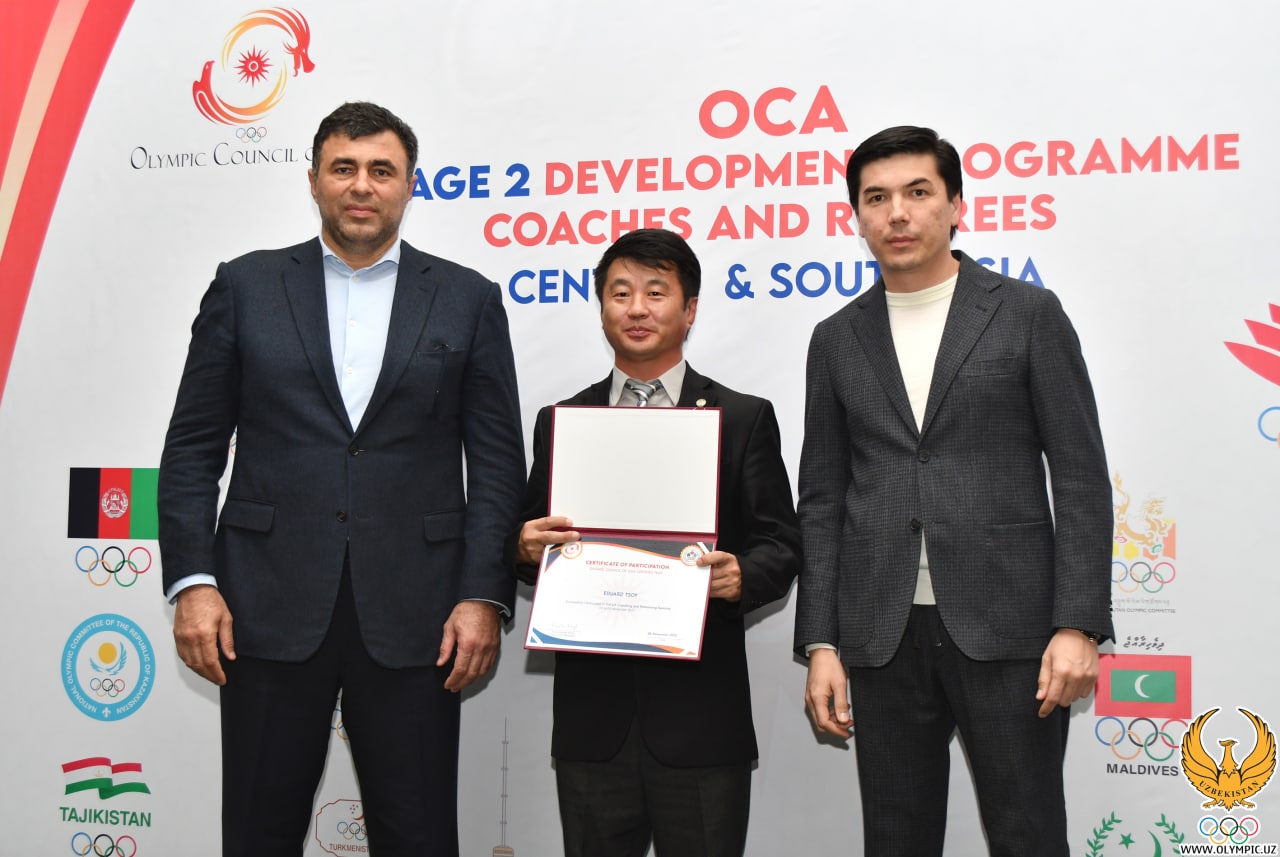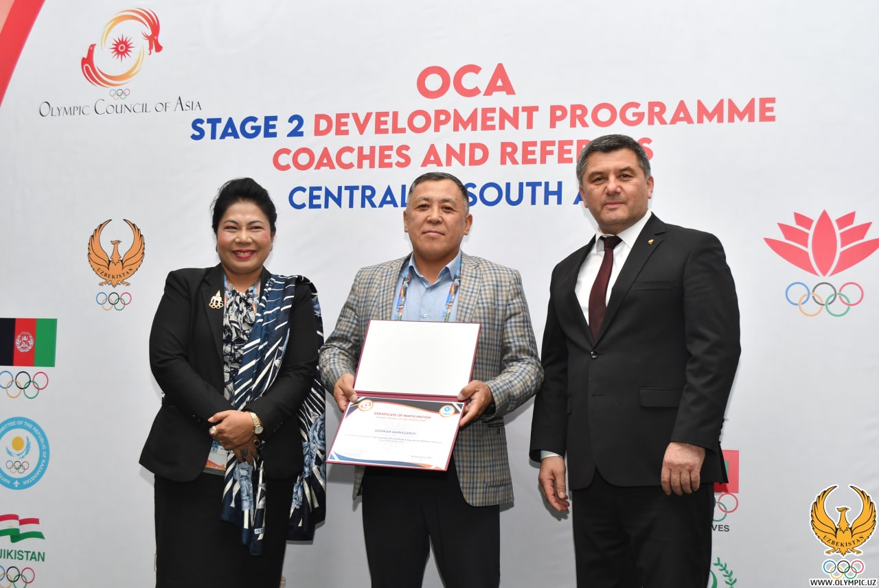 Shundan soʻng Markaziy hamda Janubiy Osiyo mamlakatlaridan tashrif buyurgan murabbiy va hakamlarga sertifikat bilan OOKning esdalik sovgʻalari taqdim etildi.