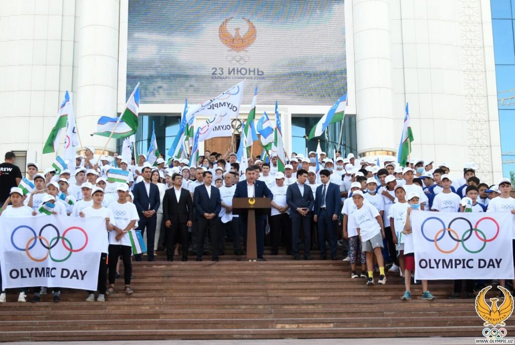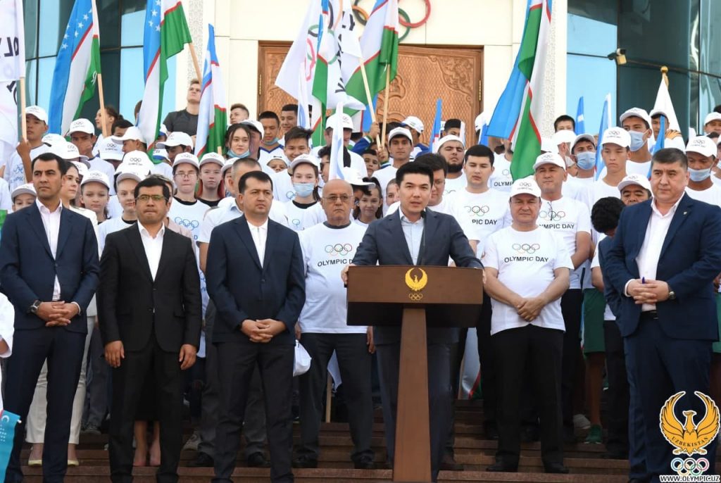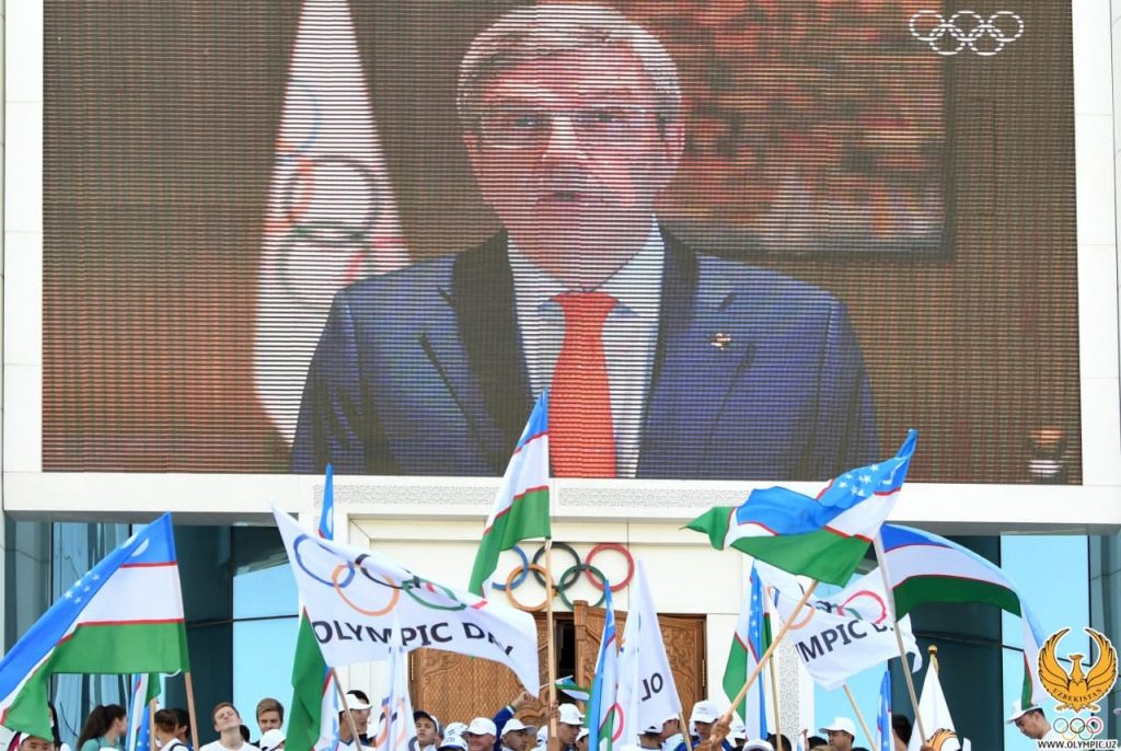Tadbirda mutasaddilar Xalqaro Olimpiya kuni tarixi, uning o‘ziga xos ahamiyati, hukumatimiz tomonidan sog‘lom turmush tarzi va Olimpizm g‘oyalarini targ‘ib qilish bo‘yicha olib borilayotgan ishlar haqida gapirib o‘tishdi. Shundan so‘ng yig‘ilganlarga Xalqaro Olimpiya qo‘mitasi prezidenti Tomas Baxning dunyo Olimpiya oilasiga yo‘llagan bayram tabrigi qo‘yib berildi.