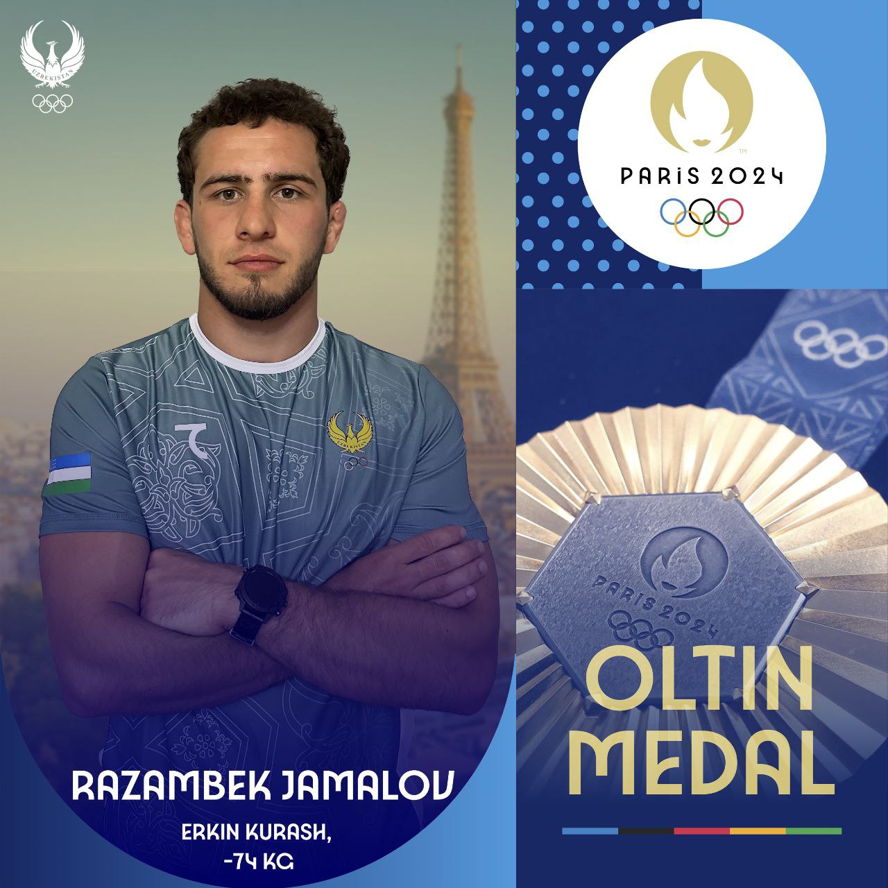 Razambek Jamalov – Parij-2024 yozgi Olimpiya oʻyinlari chempioni!