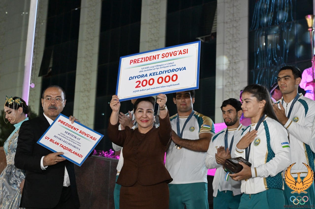 Tadbirning ikkinchi qismi Milliy Olimpiya qo‘mitasida o‘tdi. Unda Parij-2024 qahramonlariga davlat rahbarining sovg‘alari topshirildi. Prezident qaroriga muvofiq,
