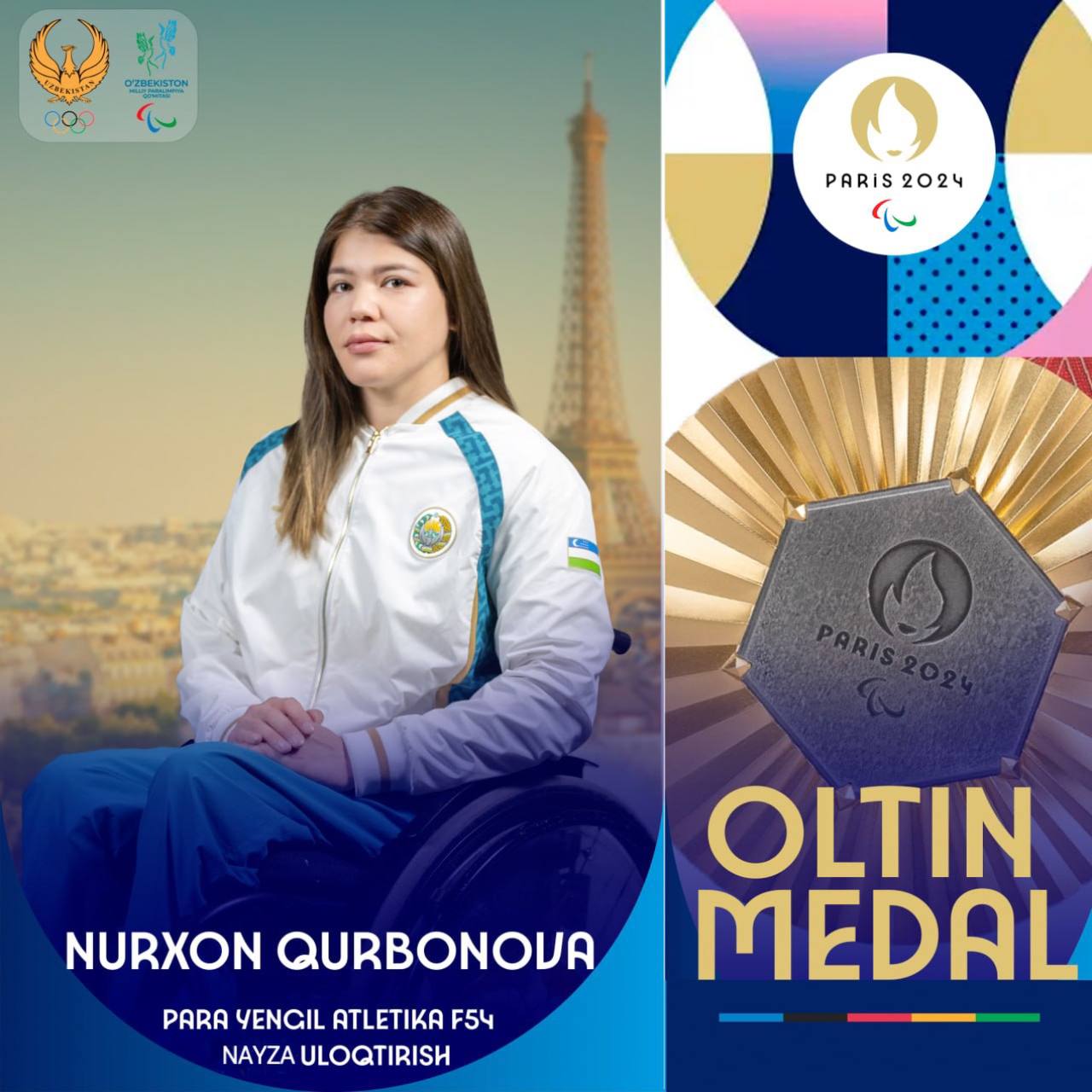 Oʻnlik dovon zabt etildi: Nurxon Qurbonova – Paralimpiya oʻyinlari chempioni!