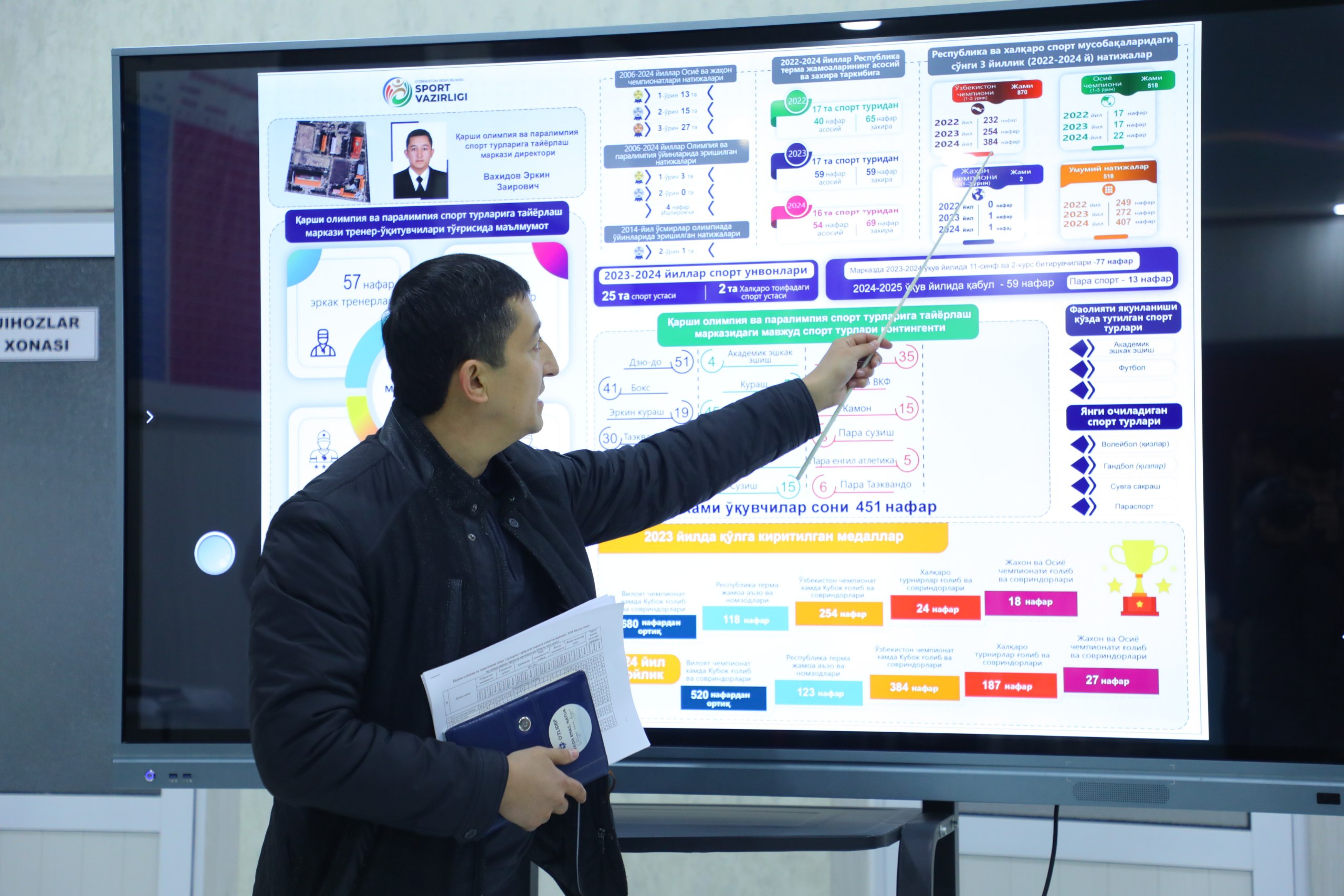 Rasmiylar kun davomida G‘uzordagi yana bir sport maktabi hamda Qarshi shahridagi viloyat Olimpiya va Paralimpiya sport turlariga tayyorlash markaziga ham tashrif buyurishdi. Ta’lim muassasasining barcha bo‘limlari ko‘zdan kechirilgach, mutasaddilar bilan uchrashuv tashkil etildi. Unda markazning moddiy-texnik bazasini yanada kuchaytirish, qishki mavsum o‘quvchilarga yanada qulayliklar yaratish borasida takliflar bildirildi. Qolaversa, ushbu ta’lim muassasasi bitiruvchilarining milliy terma jamoalar tarkibidan joy olish ko‘rsatkichini oshirish bo‘yicha ham vazifalar belgilab olindi.