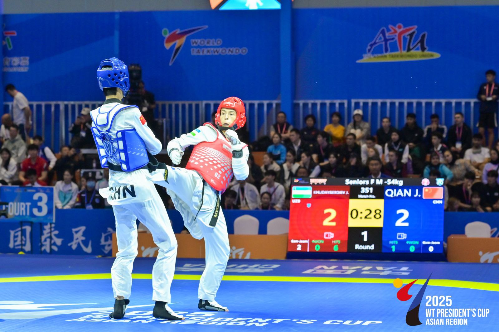 Xitoyning Tayan shahrida taekvondo WT boʻyicha Osiyo mintaqasi uchun Butunjahon taekvondo federatsiyasi Prezidenti kubogi uchun tashkil etilgan turnir yakunlandi. Musobaqaning ikkinchi kunida Oʻzbekiston terma jamoasi 2 ta oltin va 1 ta bronza medallarini qoʻlga kiritdi.