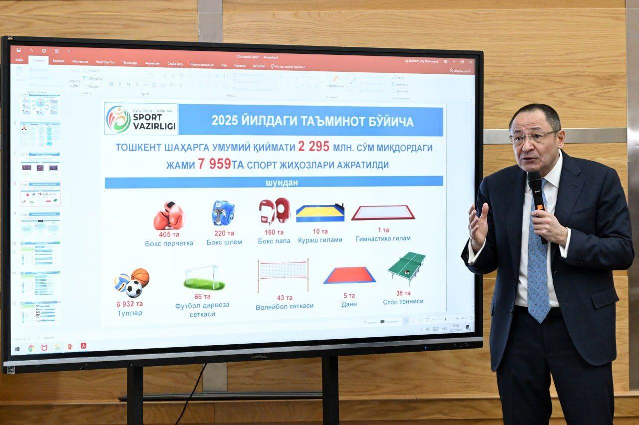 Bugun Oʻzbekiston Respublikasi Sport vazirligi, Milliy Olimpiya qoʻmitasi va Toshkent shahar hokimligi rahbariyati ishtirokida poytaxtimizda jismoniy tarbiya va sportni yanada rivojlantirishga bagʻishlangan kengaytirilgan yigʻilish boʻlib oʻtdi.