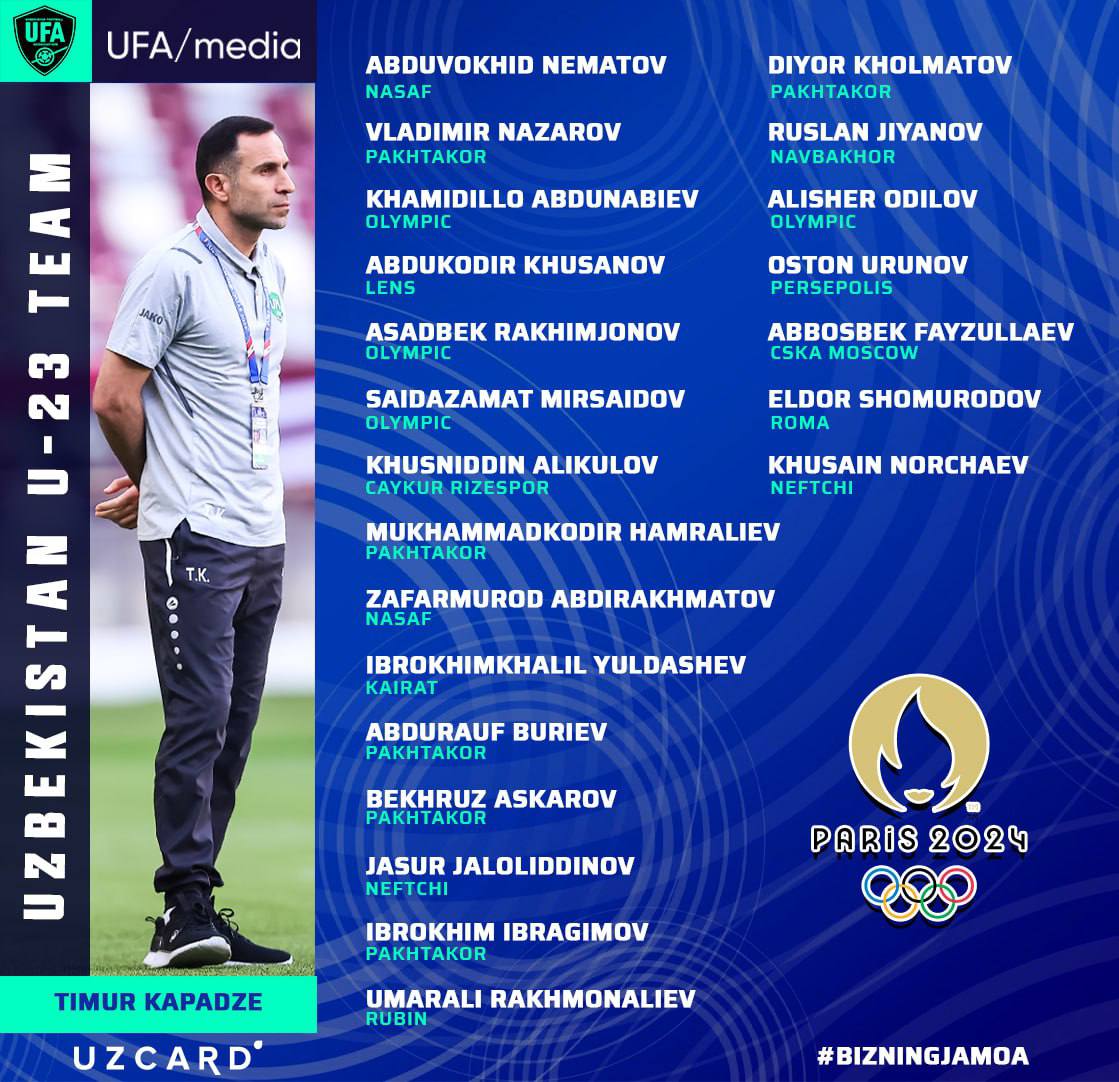 Futbol bo’yicha O’zbekiston olimpiya terma jamoasi bosh murabbiyi Timur Kapadze Parij-2024 yozgi Oli...