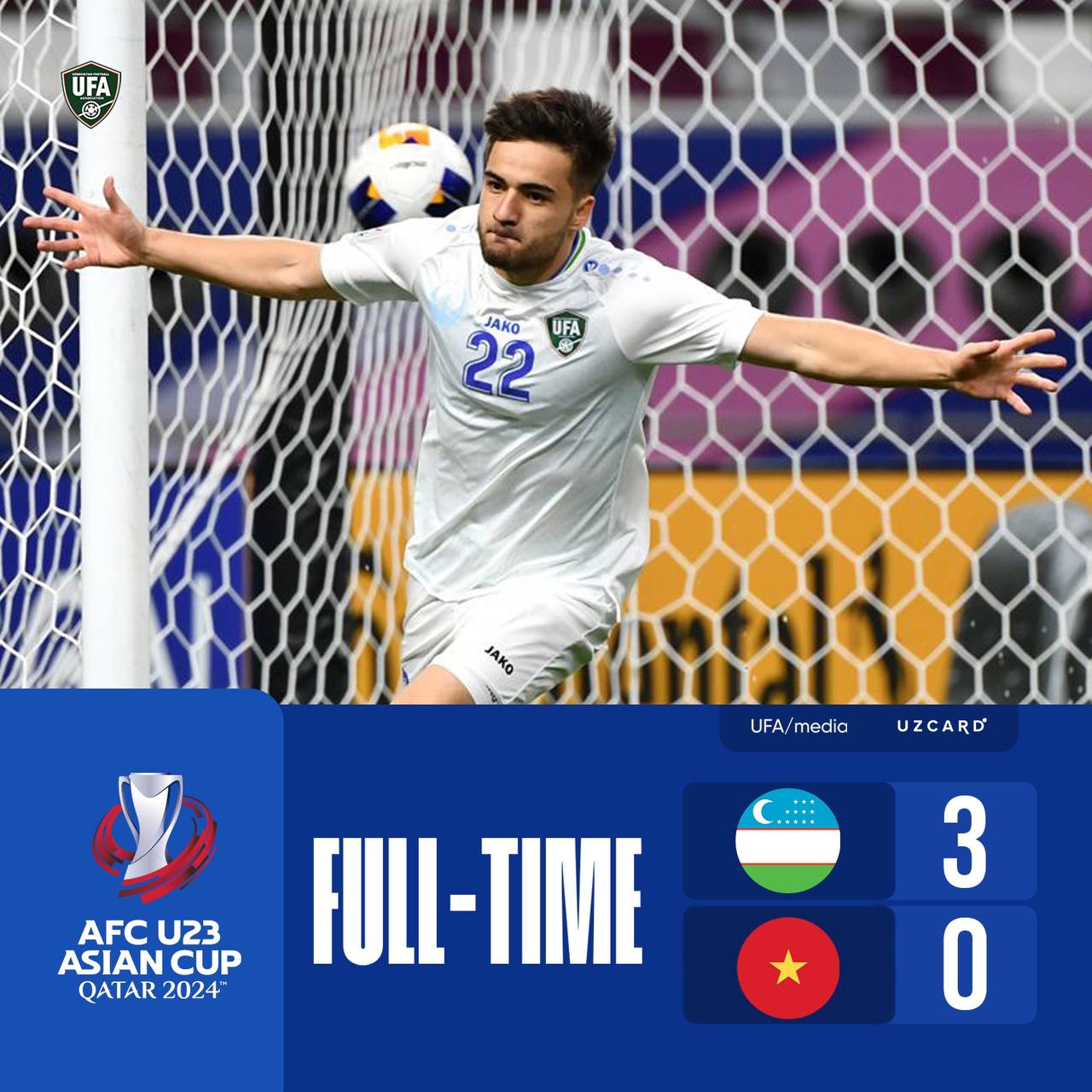 Futbol bo’yicha U23 Osiyo kubogi Oʻzbekiston 3 – 0 Vyetnam A.Odilov 4’, 39’, R.Jiyanov 35’ Tim...