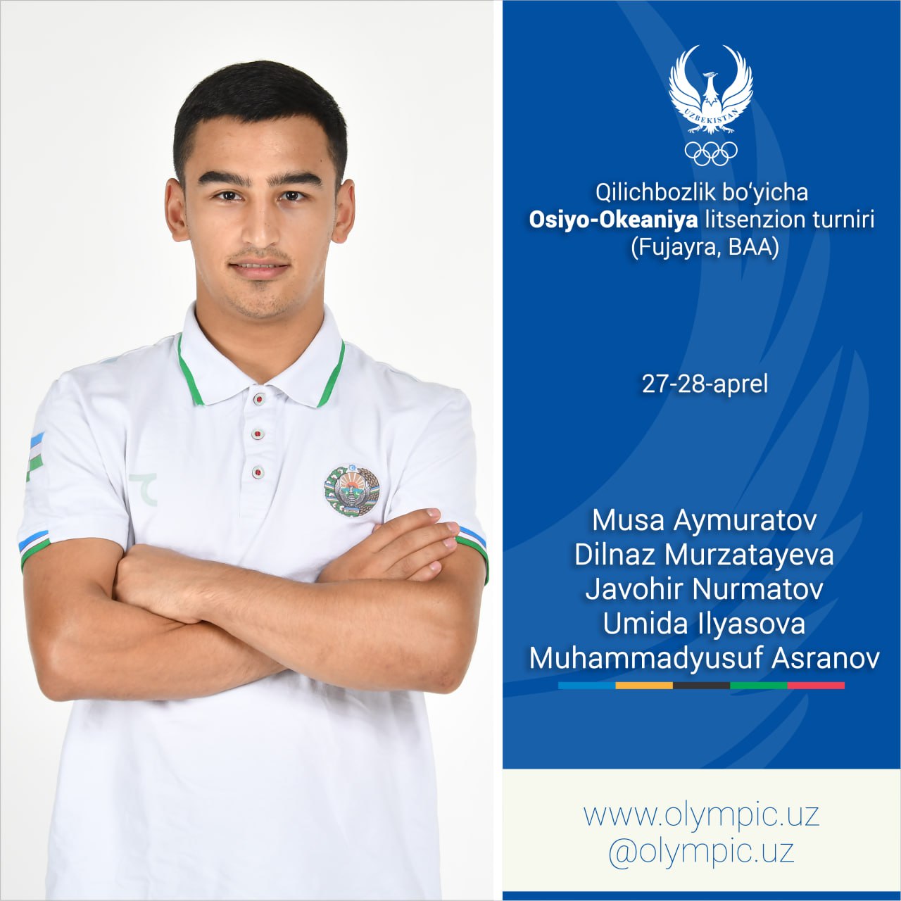 27-28-aprel kunlari BAAning Fujayra shahrida qilichbozlik boʻyicha Osiyo-Okeaniya mintaqasi uchun Pa...