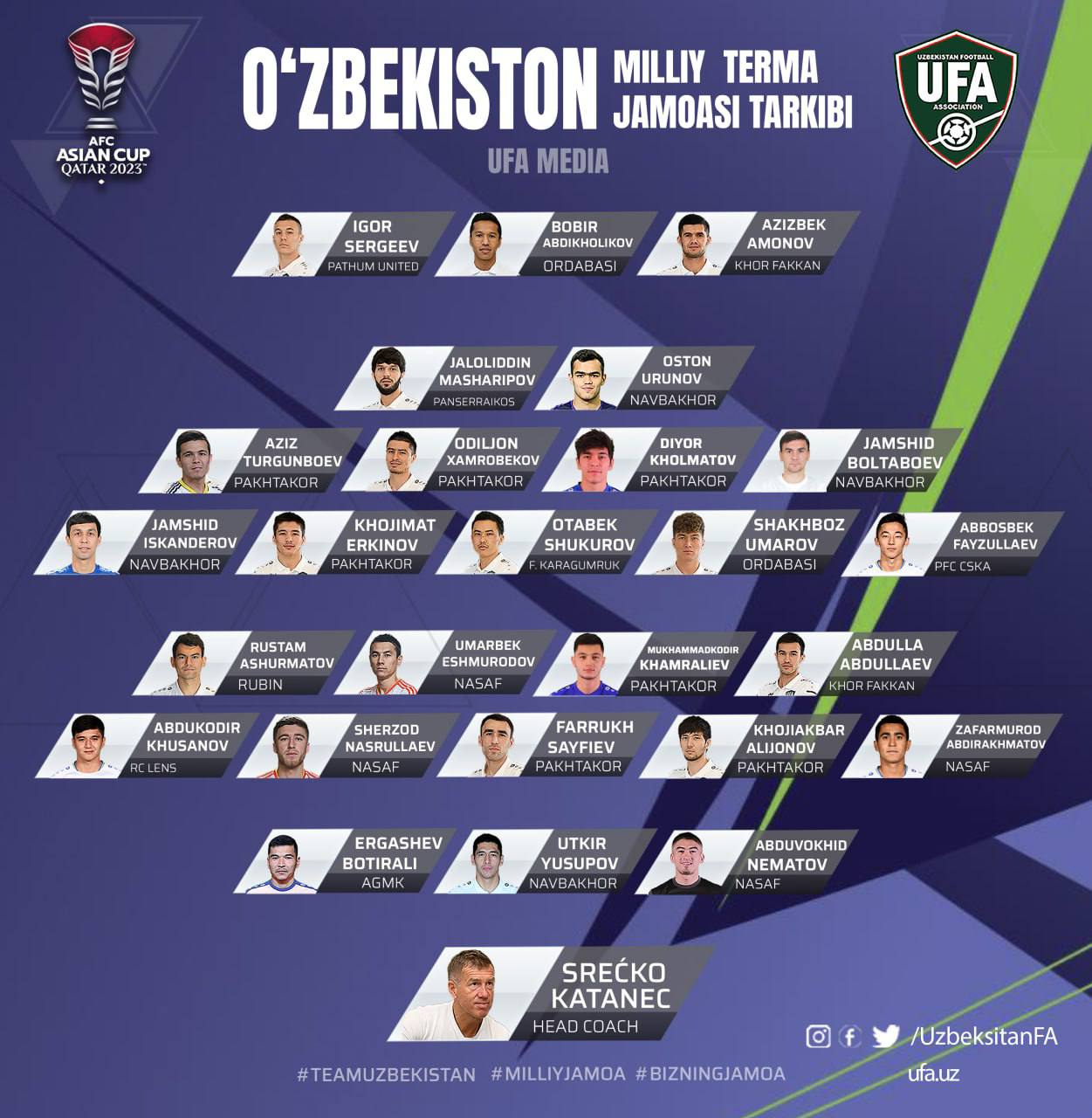 Futbol bo’yicha O’zbekiston terma jamoasi bosh murabbiyi Srechko Katanes Qatarda start olayotgan Osi...