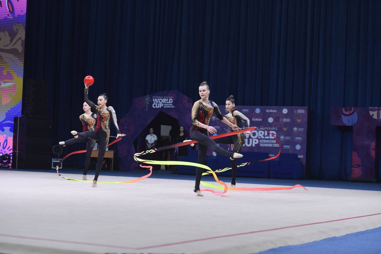Badiiy gimnastika bo‘yicha O‘zbekiston terma jamoasi Toshkentda o‘tayotgan Jahon kubogining uchinchi...