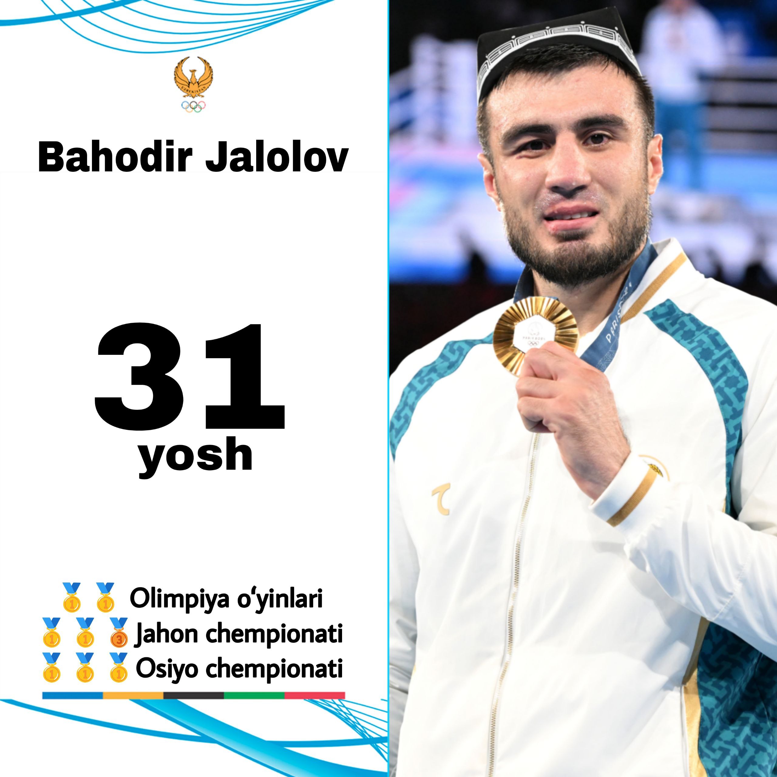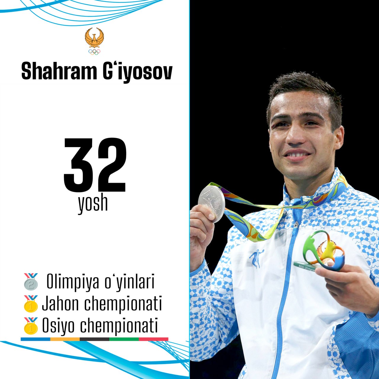 Bugun boks boʻyicha Rio-2016 yozgi Olimpiya oʻyinlarining kumush medali sovrindori, Osiyo va jahon c...