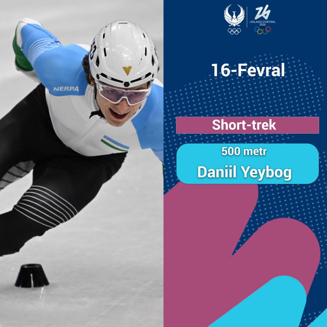 Short-trekchimiz Daniil Yeybog ikkinchi dasturdagi ishtirokini omadli boshladi. 500 metr masofada ke...