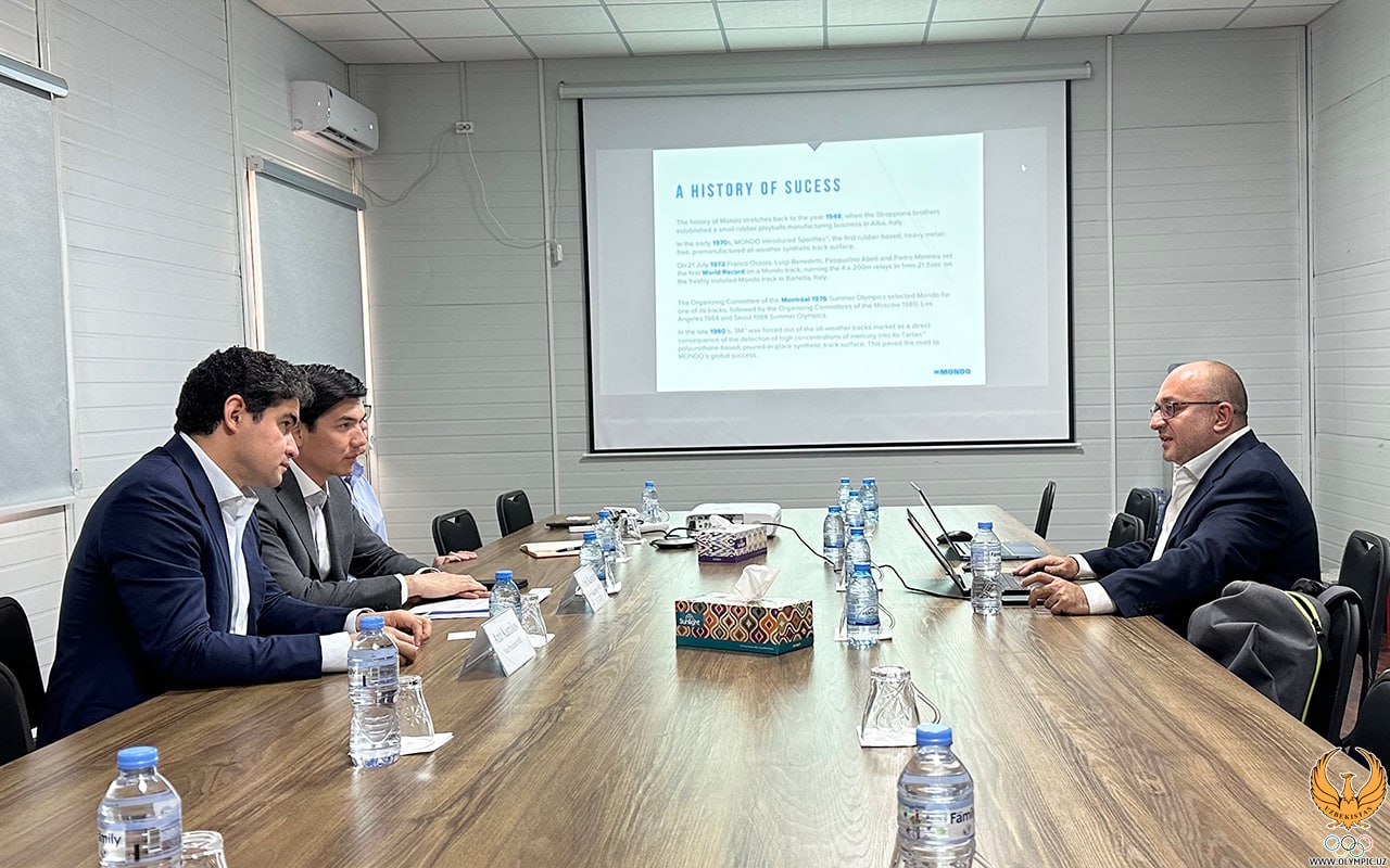 В настоящее время работа в Олимпийском городке, строящемся к IV юношеским Азиатским играм “Ташкент-2025”, идёт полным ходом. После того, как объекты будут построены, оснащение их самым современным спортивным инвентарём станет основной задачей. Генеральный секретарь НОК Ойбек Касимов и заместитель председателя Комитета Азизжон Камилов встретились с представителями итальянской компании «Mondo» и китайской компании «TaiShan».