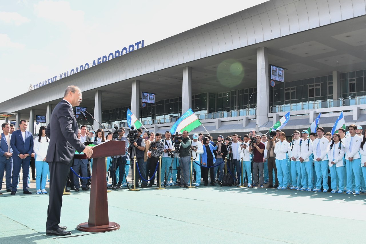 Сегодня в Ташкентском международном аэропорту имени Ислама Каримова состоялась торжественная церемония проводов делегации Узбекистана, которая примет участие в XIX Азиатских играх Ханчжоу-2022. В мероприятии принял участие Премьер-министр Республики Узбекистан Абдулла Арипов.