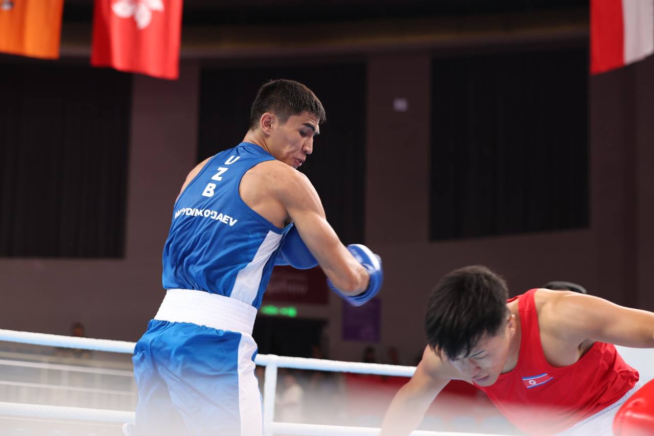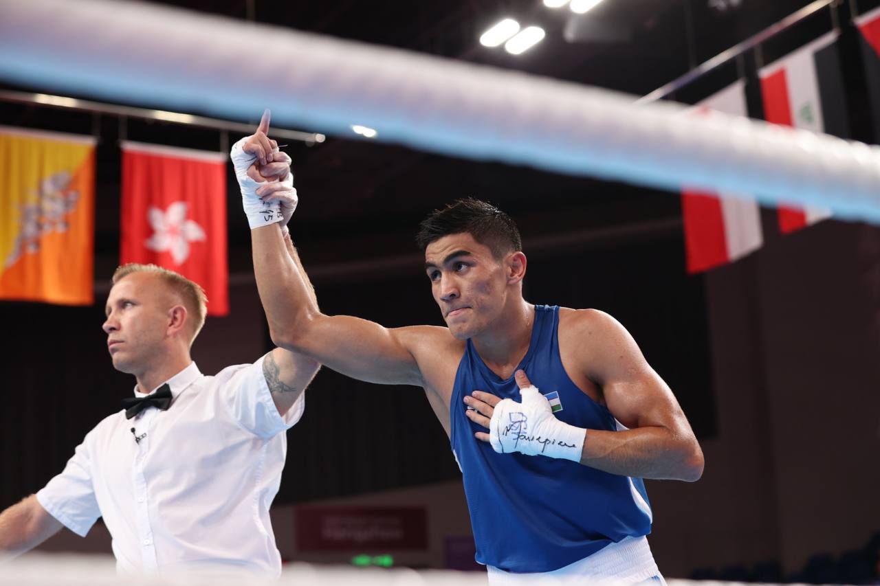 Чемпион мира Асадхуджа Муйдинходжаев (-71 кг) также провёл свой первый бой на высокой ноте. Поднявшись на ринг против представителя КНДР, наш соотечественник победил со счётом 5:0 и вышел в следующий круг.