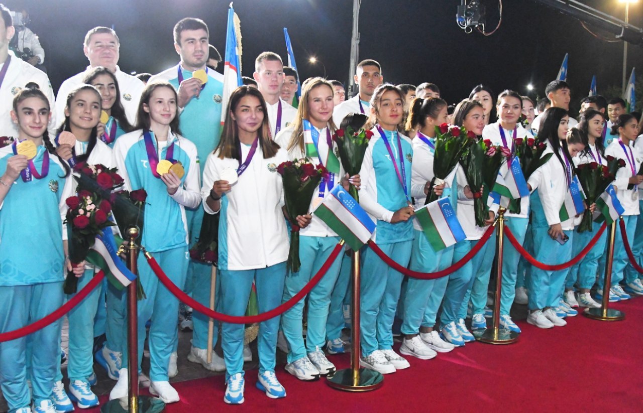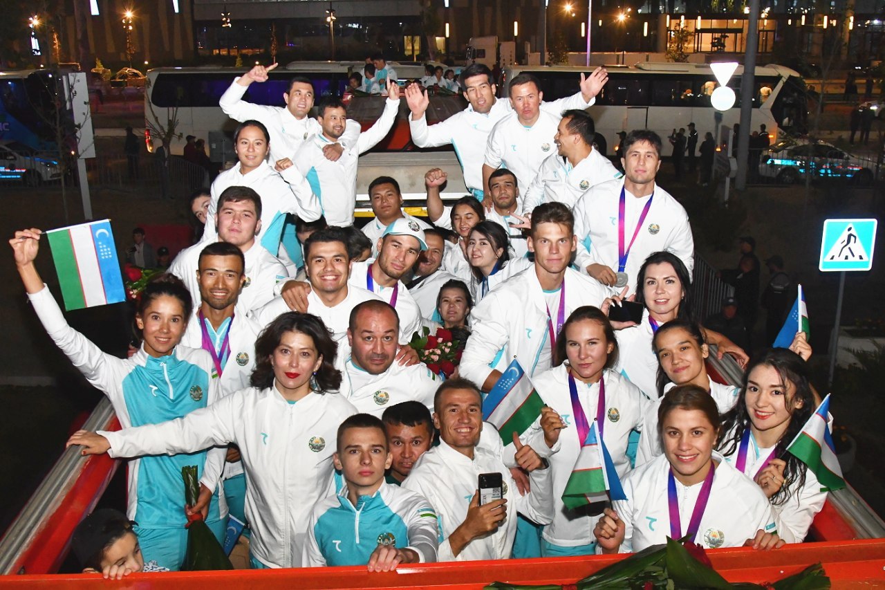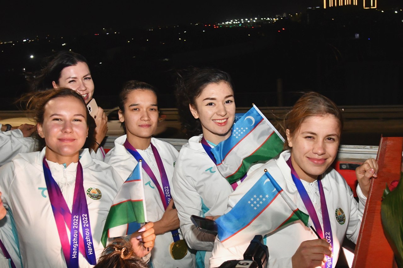 Делегация Узбекистана, успешно принявшая участие в XIX летних Азиатских играх, состоявшихся в китайском городе Ханчжоу с 23 сентября по 8 октября, была встречена торжественно. Наши соотечественники прибыли на Родину на специальном чартерном рейсе, организованном со стороны государства.