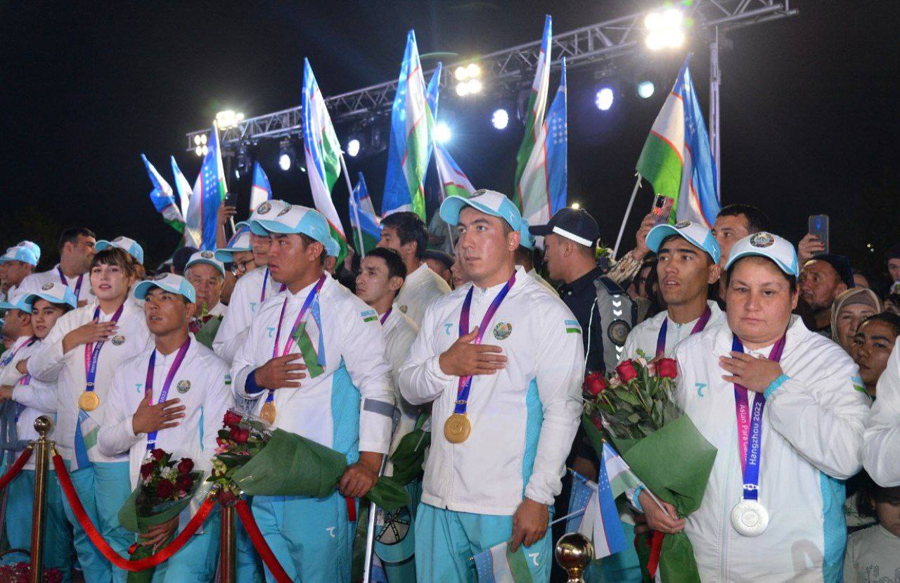 Делегация Узбекистана, принимавшая участие в IV Пара Азиатских играх, проходивших с 22 по 28 октября в Ханчжоу (Китай), вернулась на Родину. Героев, достойно выступивших на международной арене, торжественно встретили в Ташкентском международном аэропорту имени Ислама Каримова. В церемонии приняли участие руководитель департамента Администрации Президента Республики Узбекистан Одил Абдурахманов, руководство Министерства молодёжной политики и спорта, Национальных Олимпийского и Паралимпийского комитетов, широкая спортивная общественность.