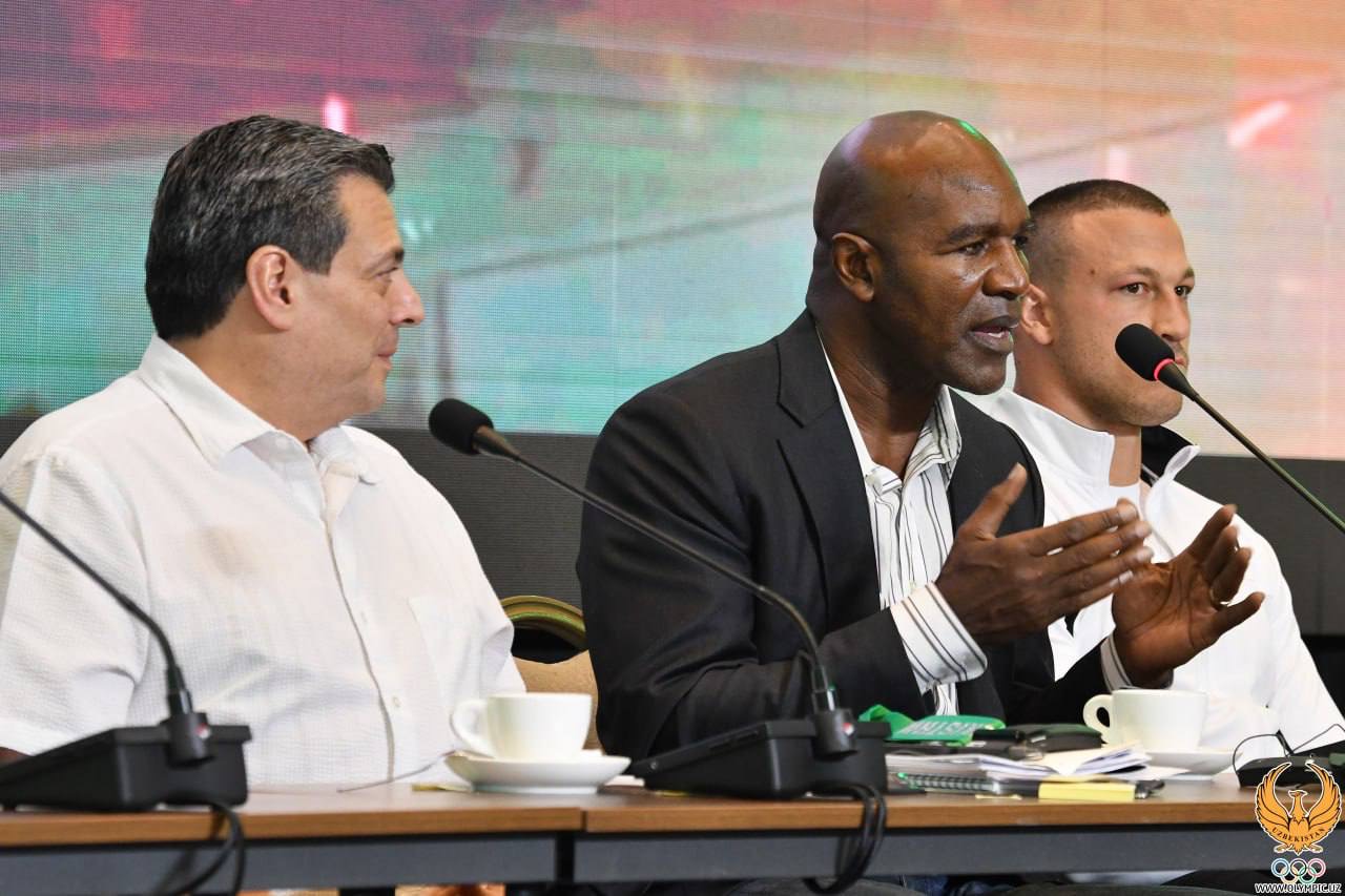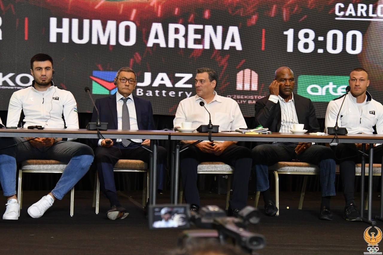 В преддверии вечера профессионального бокса, который состоится 17 ноября в «Humo Arena», состоялась пресс-конференция. В ней приняли участие президент Всемирного боксёрского совета (WBC) Маурисио Сулейман, первый вице-президент Федерации профессионального бокса Узбекистана Гафур Рахимов, звезда мирового бокса Эвандер Холифилд, отечественные мастера кожаной перчатки, которые будут защищать честь страны на домашней арене через 2 дня, а также сотрудники СМИ.