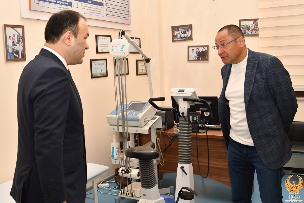 В современном спорте в подготовке сборных команд к крупным комплексным соревнованиям большую роль играет и спортивная медицина, в частности, такие направления, как диетология, фармакология, реабилитация. Исходя из этого, в Республиканском научно-практическом центре спортивной медицины (РНПЦСМ) при Комитете намечаются новые современные изменения. Официальные лица осмотрели новое реабилитационное отделение, функционирующее в данном Центре. Директор РНПЦСМ Камол Сирожитдинов добавил, что подразделение оснащено всей необходимой техникой, обеспечивает процесс восстановления спортсменов и служит для их новых побед. Адхам Ильхамович высоко оценил новые планы и дал дополнительные рекомендации по повышению эффективности работы.