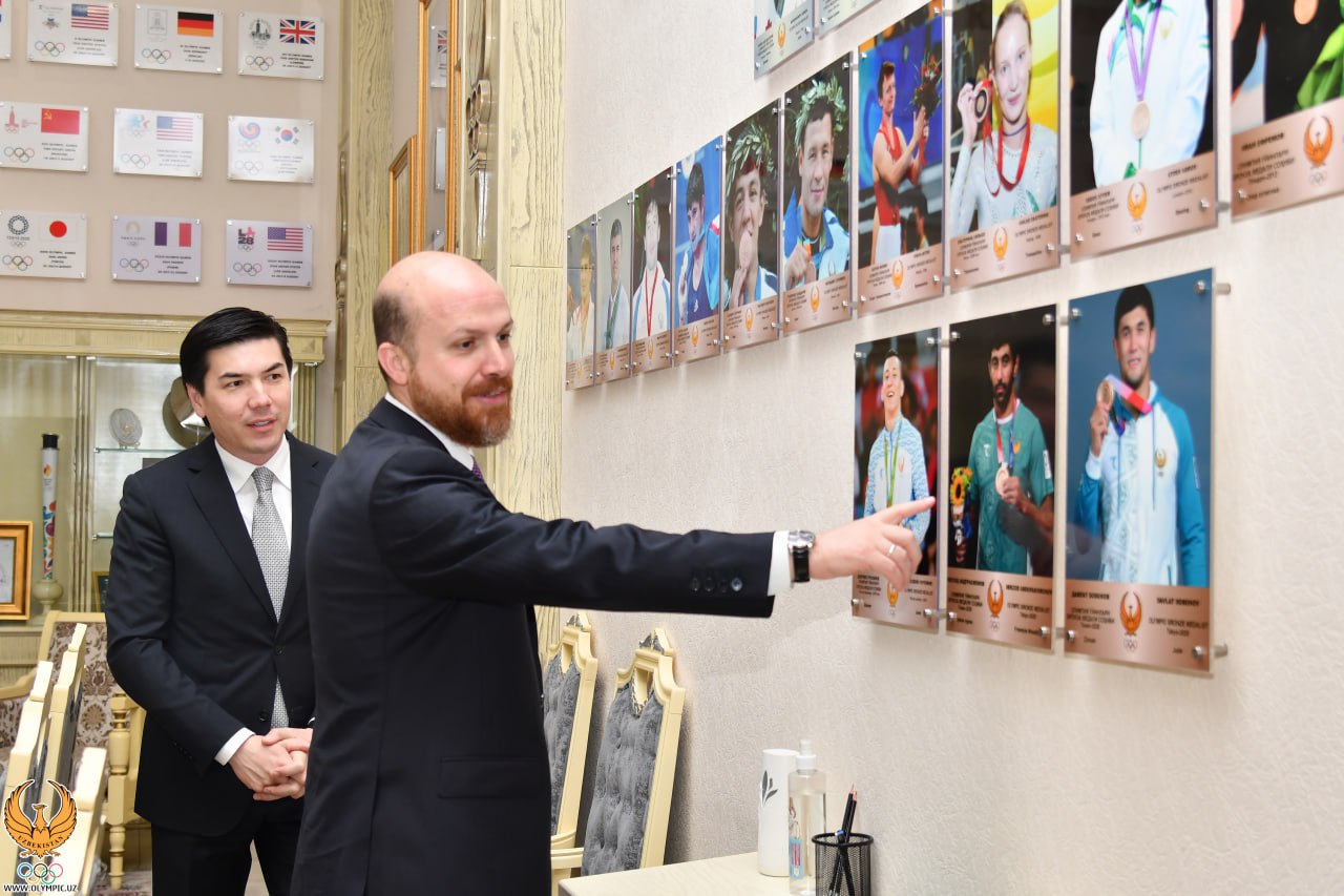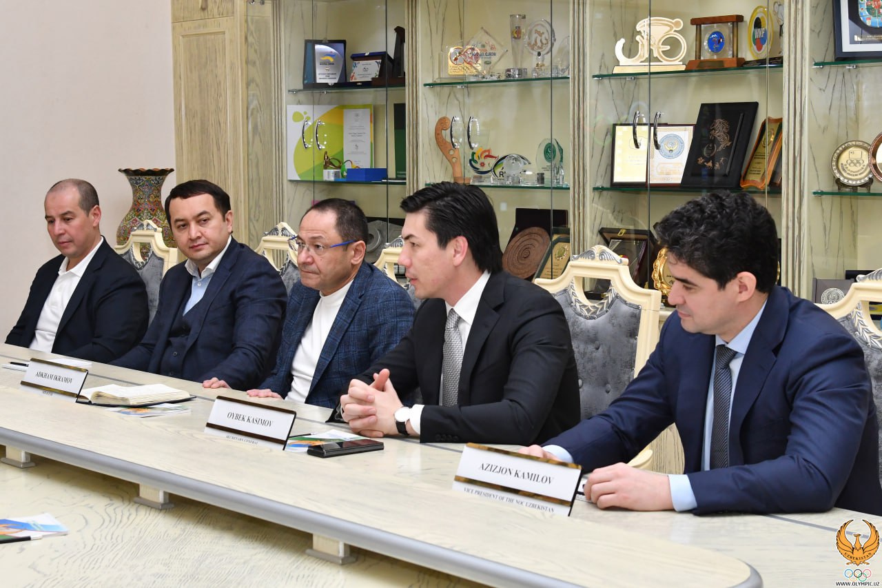В свою очередь, Адхам Ильхамович рассказал о пристальном внимании, которое уделяется развитию массового и профессионального спорта под руководством Главы нашего государства, ознакомил высокопоставленного гостя с проводимой в этом направлении работой. Также Генеральный секретарь НОК Ойбек Касимов провёл презентацию IV юношеских Азиатских игр Ташкент-2025 и строящегося для данных стартов Олимпийского городка.
