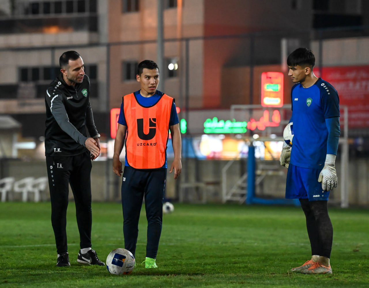 Как вам известно, олимпийская сборная Узбекистана по футболу ведёт тщательную подготовку к соревнованиям Кубка Азии в Катаре. В рамках подготовки к этому важному старту, наши футболисты начали проведение учебно-тренировочных сборов в ОАЭ. В первый день спортсменам были даны лёгкие физические нагрузки, а со вчерашнего дня ребята начали тренироваться на поле.