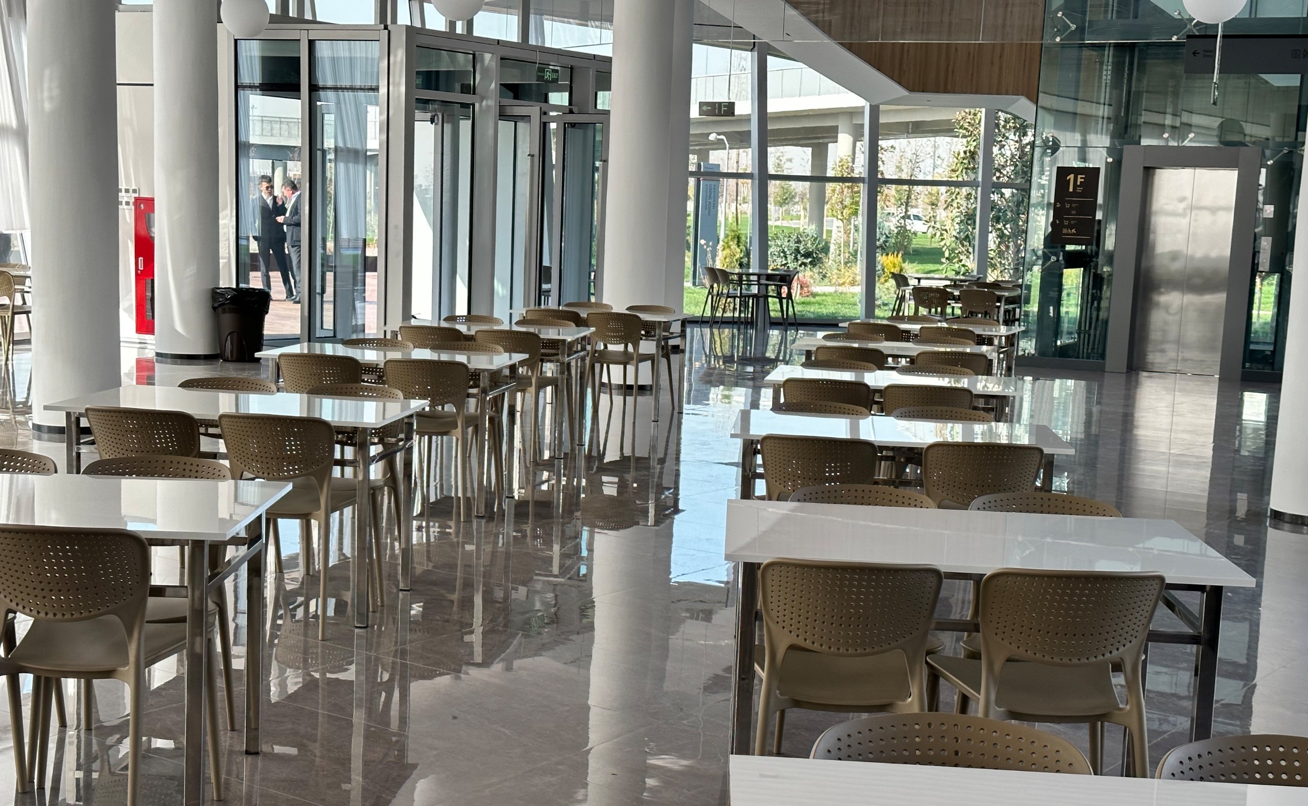 В городке для безопасности и комфорта спортсменов и тренеров предусмотрены все необходимые условия. В частности, официальные лица побывали в местном ресторане, где ознакомились с условиями для приёма пищи, а также изучили стардарты питания, рацион и меню.