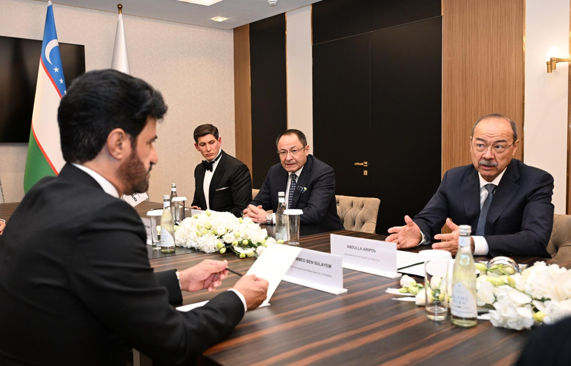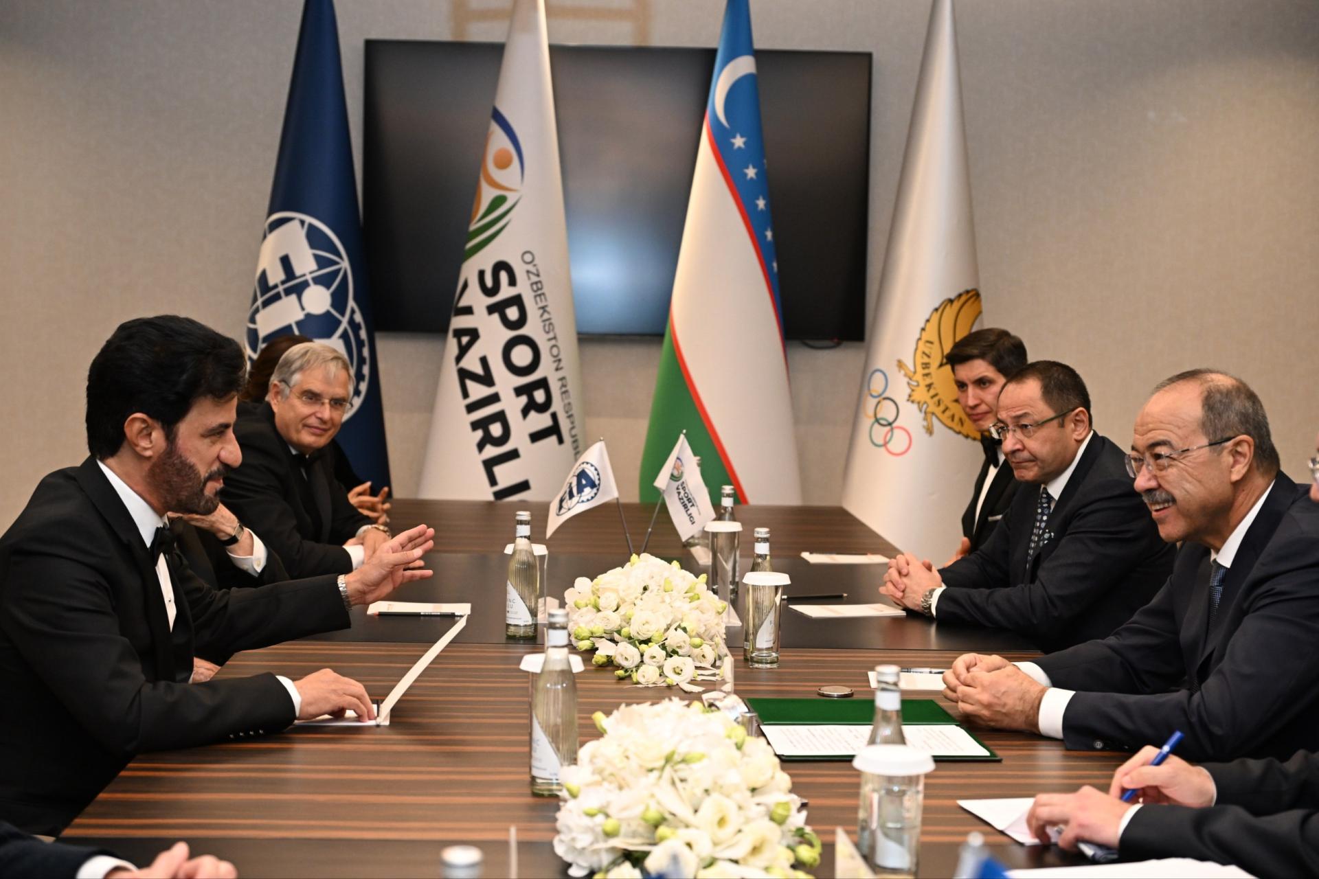 Делегация официальных лиц во главе с Премьер-министром Республики Узбекистан Абдуллой Ариповым провела встречу с Президентом Международной автомобильной федерации (FIA) Мохаммедом Бен Сулайемом. В ходе беседы были подробно обсуждены вопросы вывода двустороннего сотрудничества на новый этап. Стороны рассмотрели перспективные инициативы, направленные на развитие автоспортивной инфраструктуры в Узбекистане, проведение международных мероприятий и создание современных условий для спортсменов.
