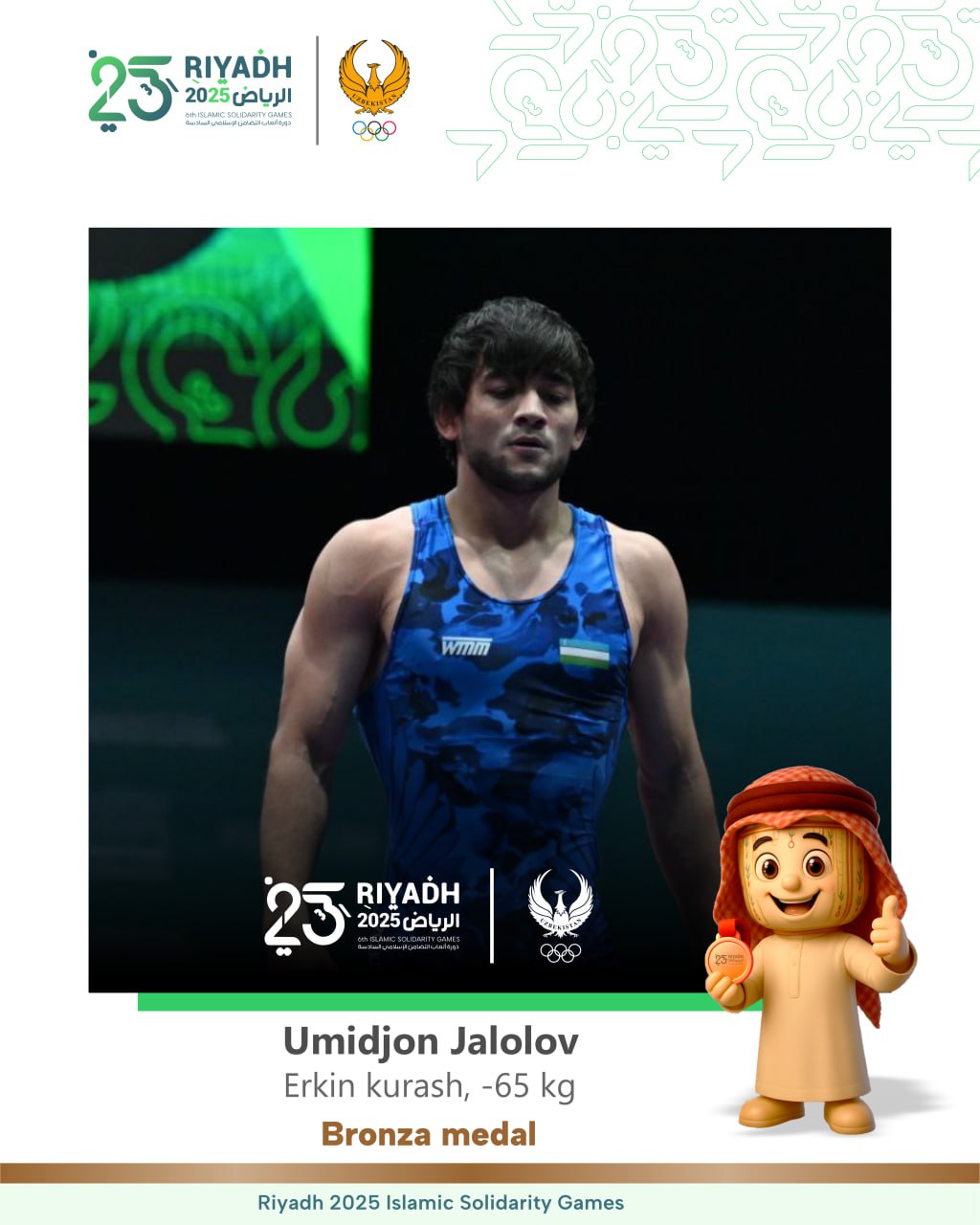 В соревнованиях по вольной борьбе наша сборная завоевала ещё одну медаль. Умиджон Жалолов, выступавш...
