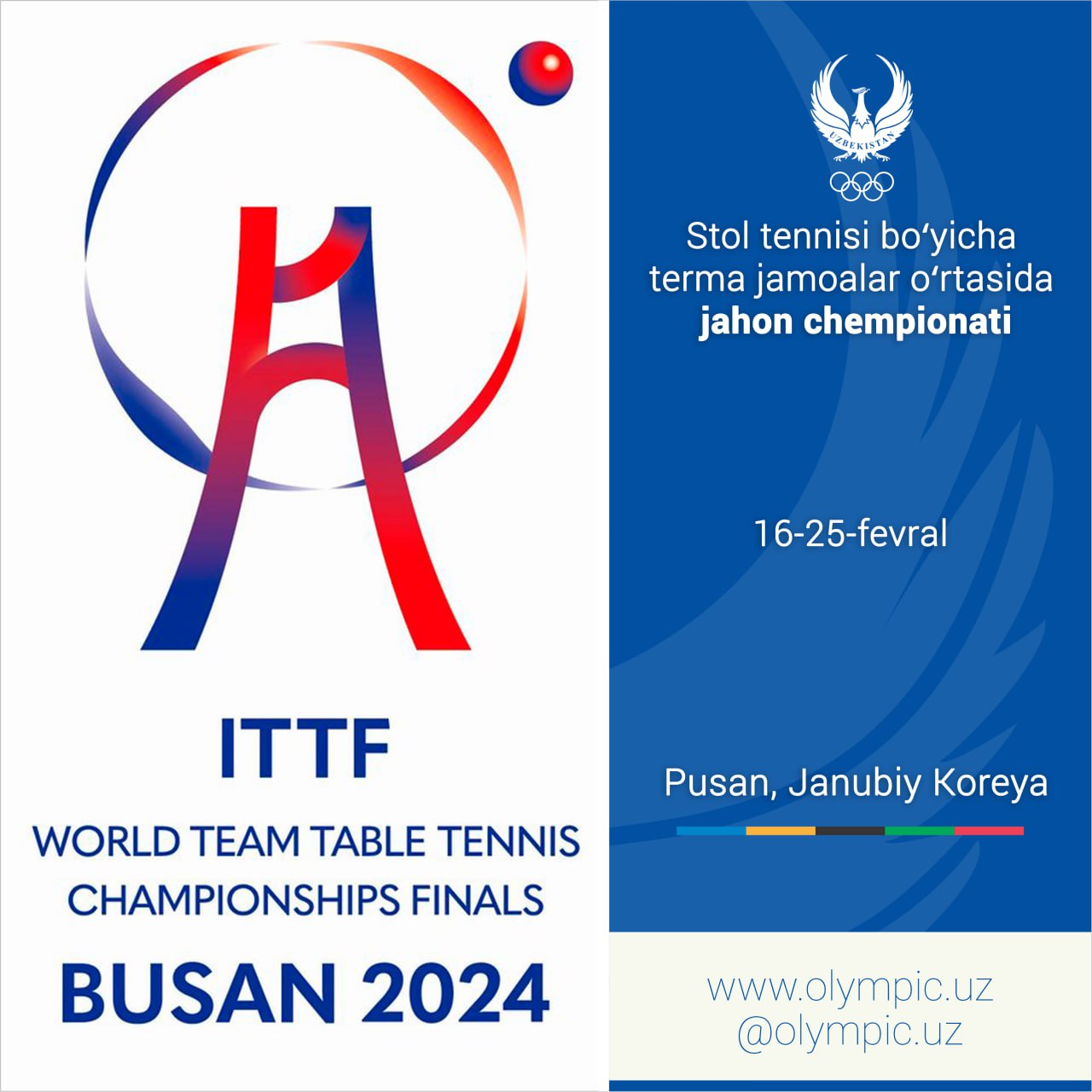 Ровно через месяц в городе Пусан Южной Кореи состоится чемпионат мира по настольному теннису среди с...