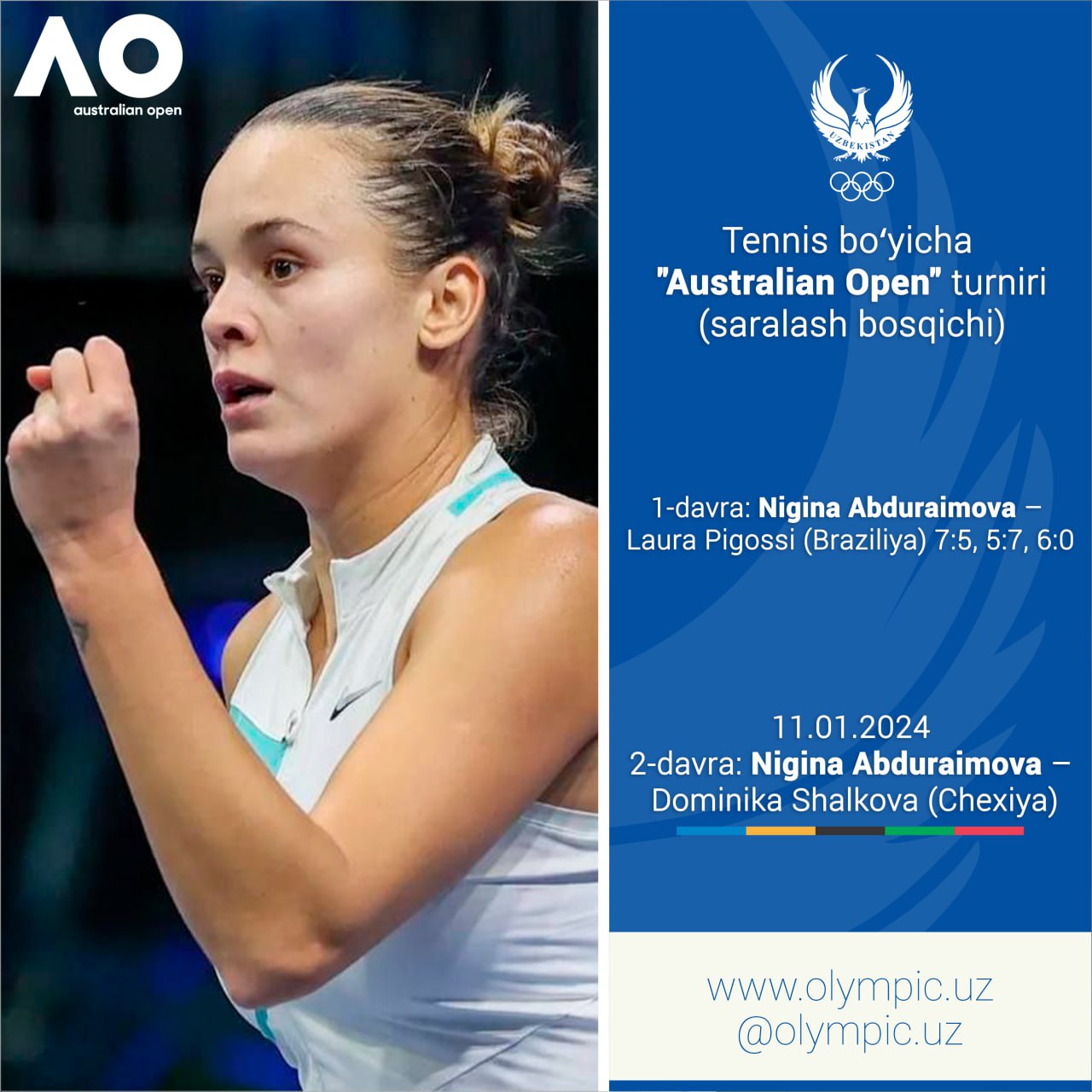Представительница сборной Узбекистана по теннису Нигина Абдураимова успешно провела отборочный этап ...