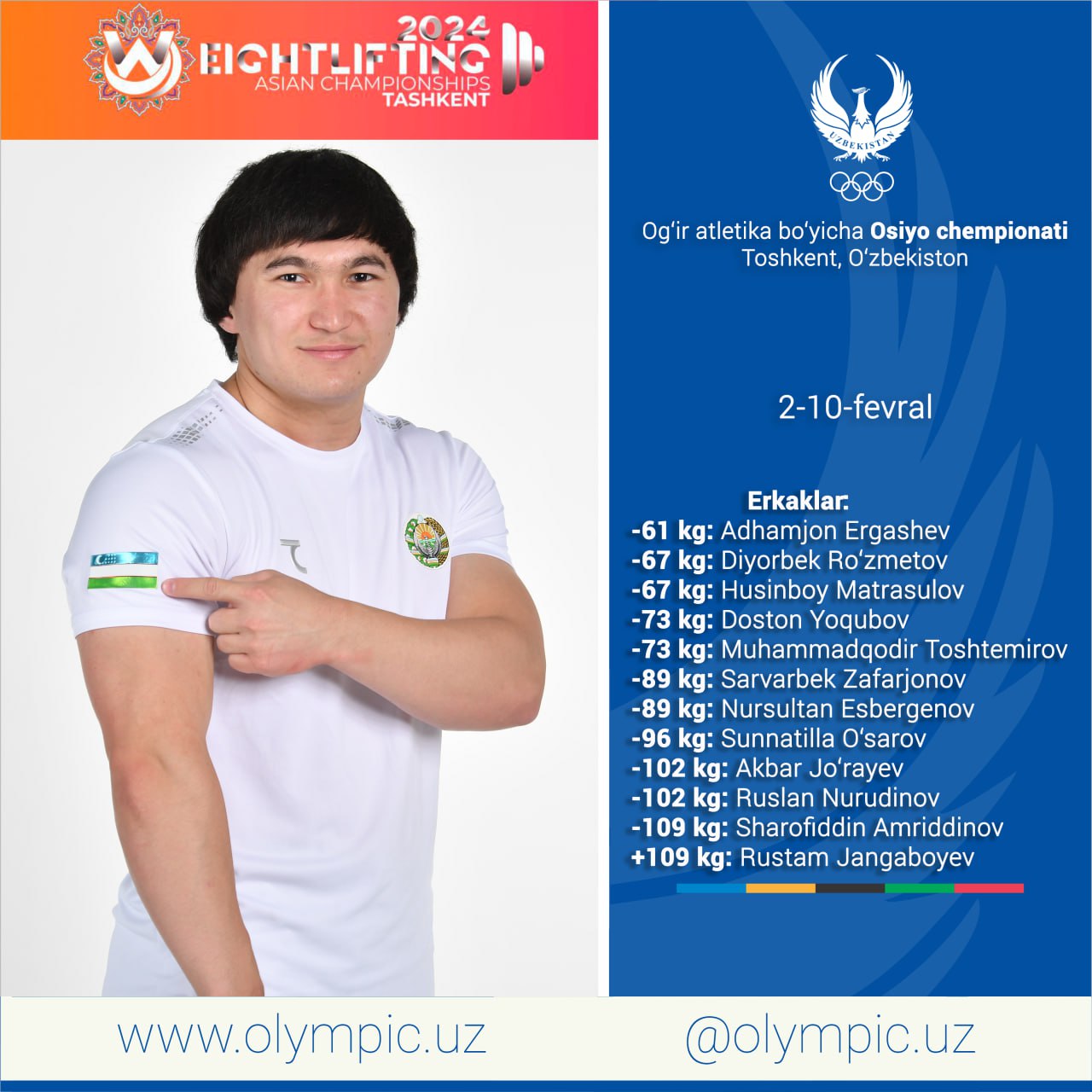 Как вам известно, 2-10 февраля Ташкент примет очередной чемпионат Азии по тяжёлой атлетике. В этом т...