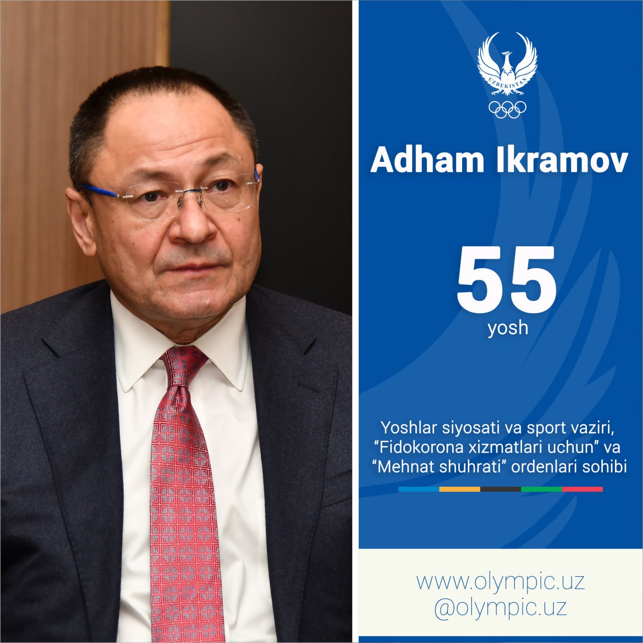 Национальный Олимпийский комитет Узбекистана поздравляет Министра молодёжной политики и спорта, обла...