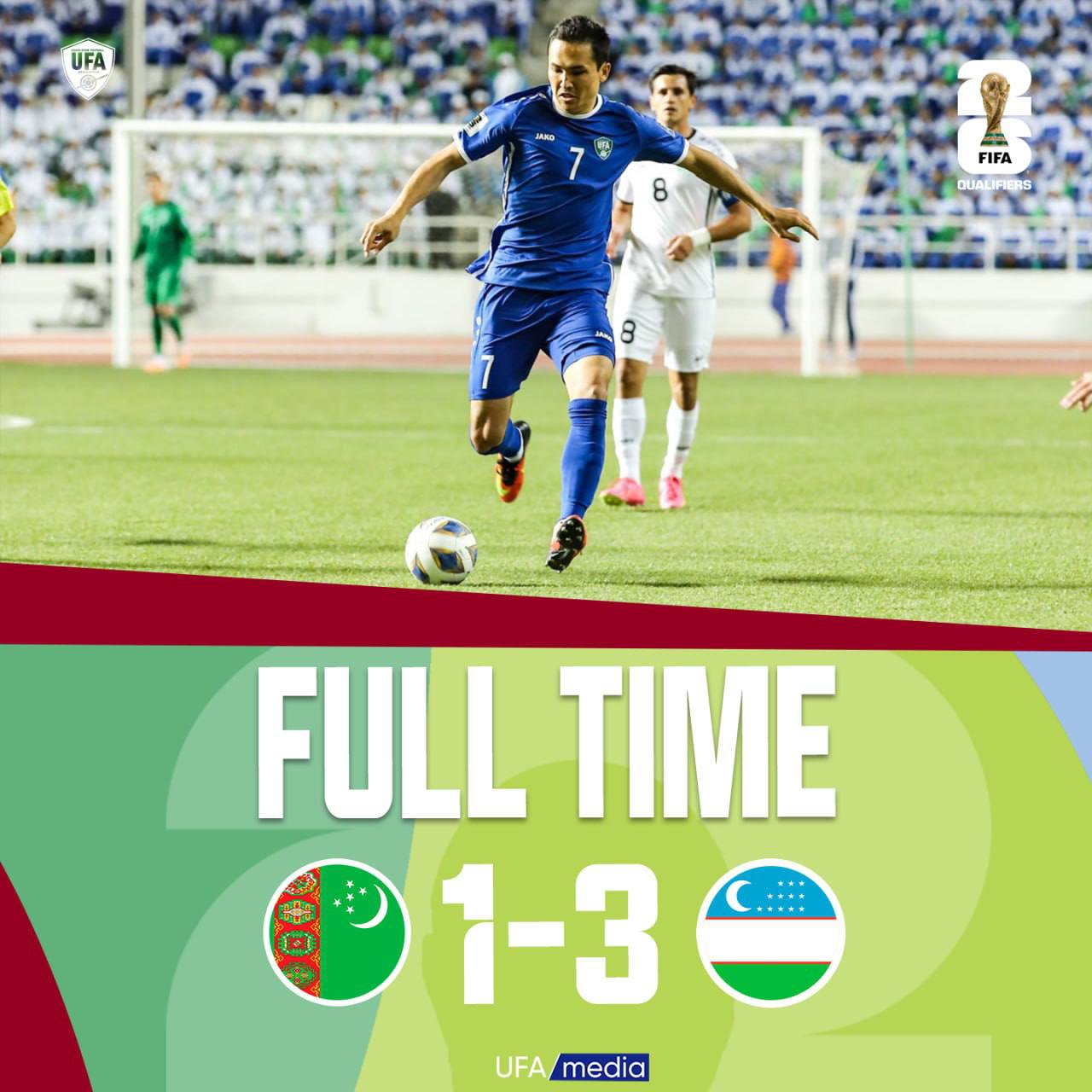 отборочный этап ЧМ-2026 Туркменистан 1 – 3 Узбекистан Голы: М. Дурдыев 44’ - O.Шукуров 57’, 77’,...