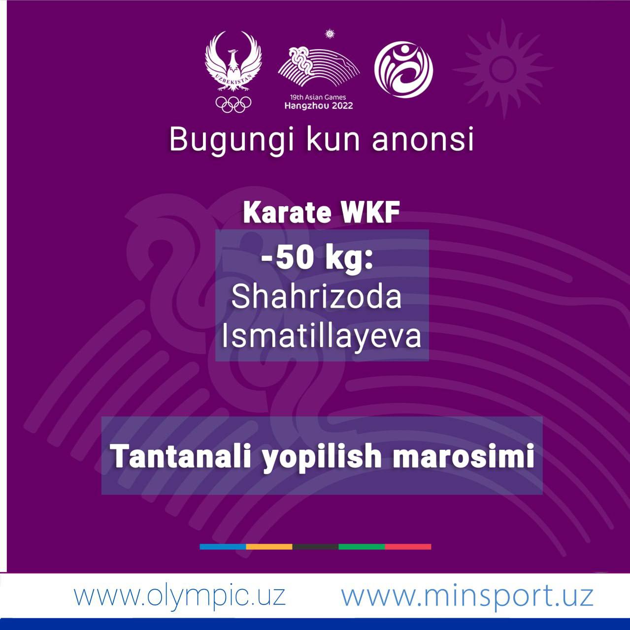 Сегодня завершаются XIX летние Азиатские игры Ханчжоу-2022. В программе этого дня честь нашей страны...
