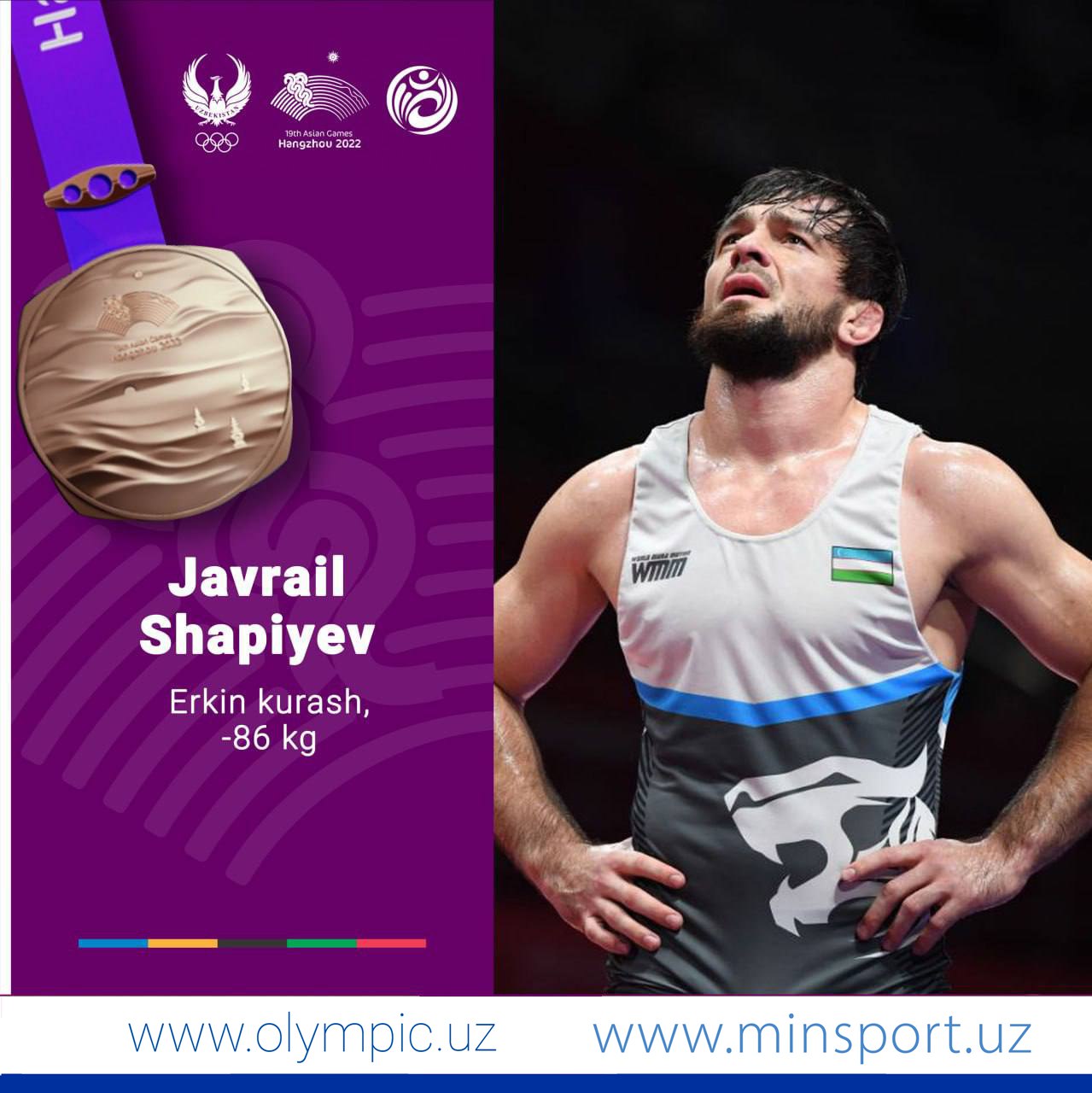Джавраил Шапиев (-86 кг), лицензиат Олимпийских игр 2024 года в Париже по вольной борьбе, также доба...