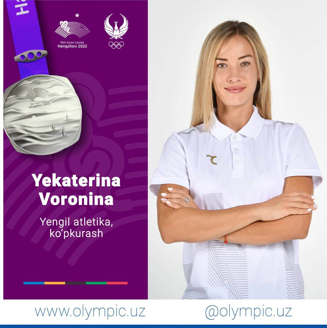 Член сборной Узбекистана по лёгкой атлетике Екатерина Воронина завоевала вторую медаль Азиатских игр...