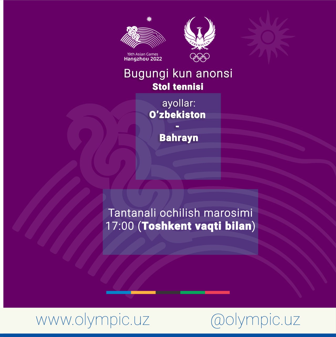 Ханчжоу-2022: сборная Узбекистана по настольному теннису успешно провела сегодняшний матч в рамках 2...