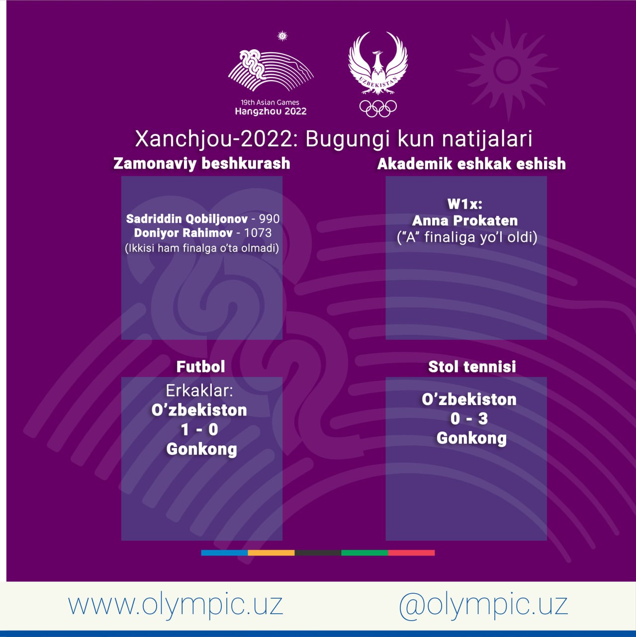 Хорошие новости с раннего утра! Делегация Узбекистана завоевала свою первую медаль на XIX летних Ази...