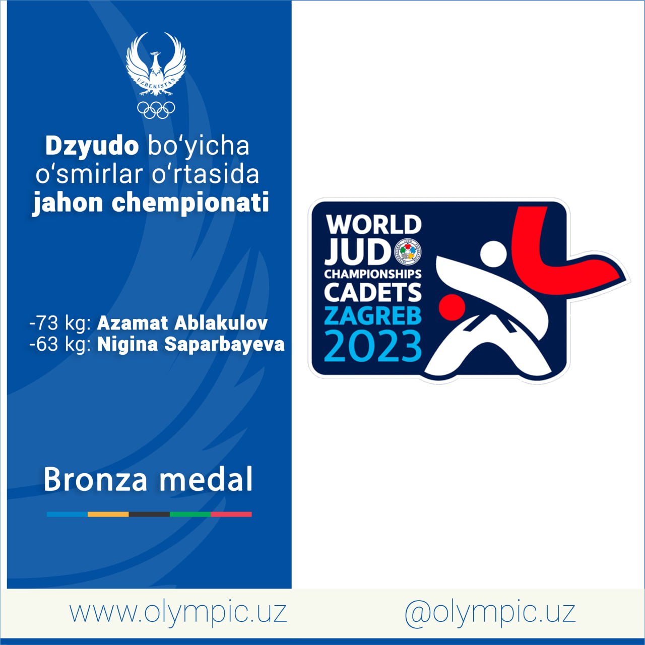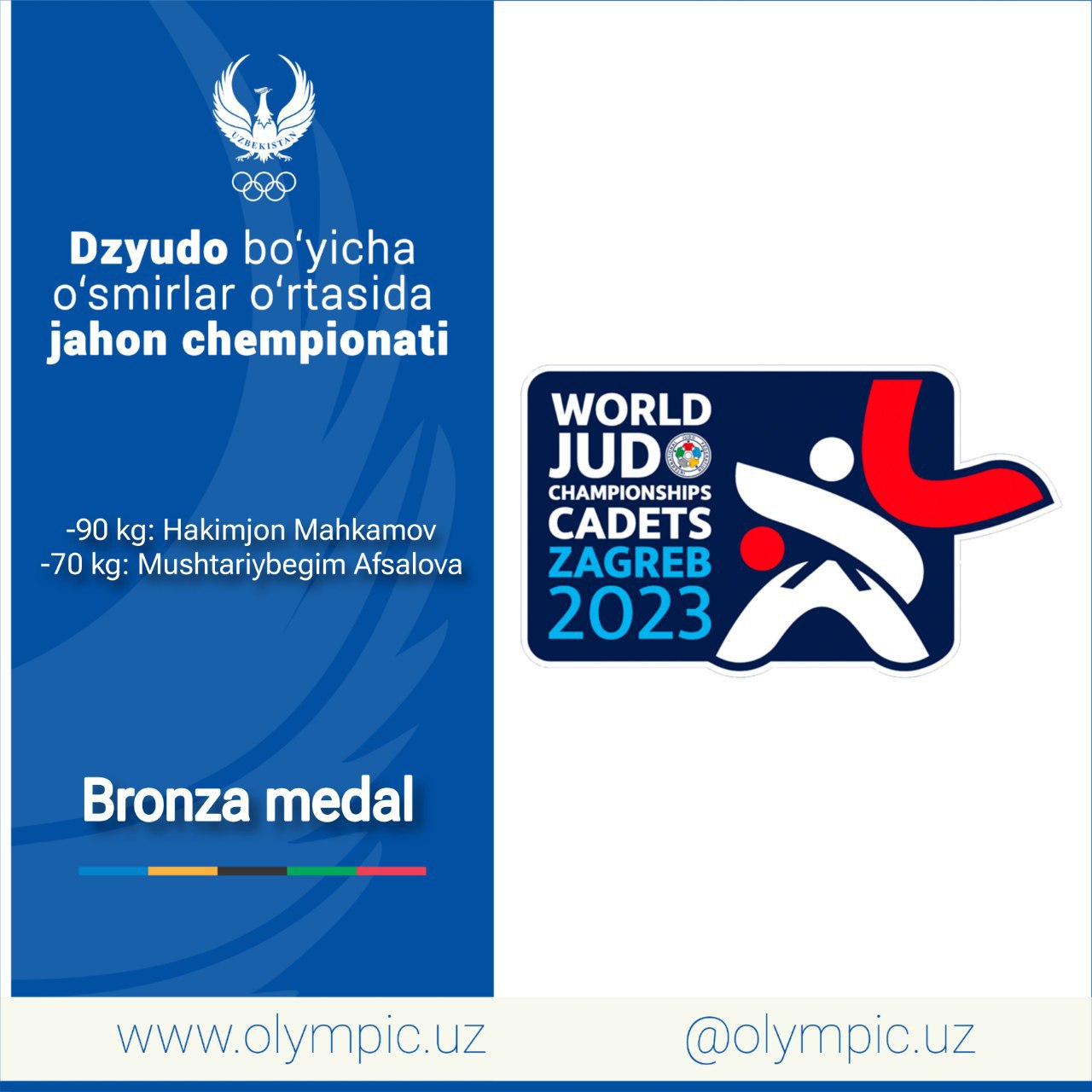 На проходящем в Хорватии чемпионате мира по дзюдо среди юниоров сборная Узбекистана завоевала ещё дв...