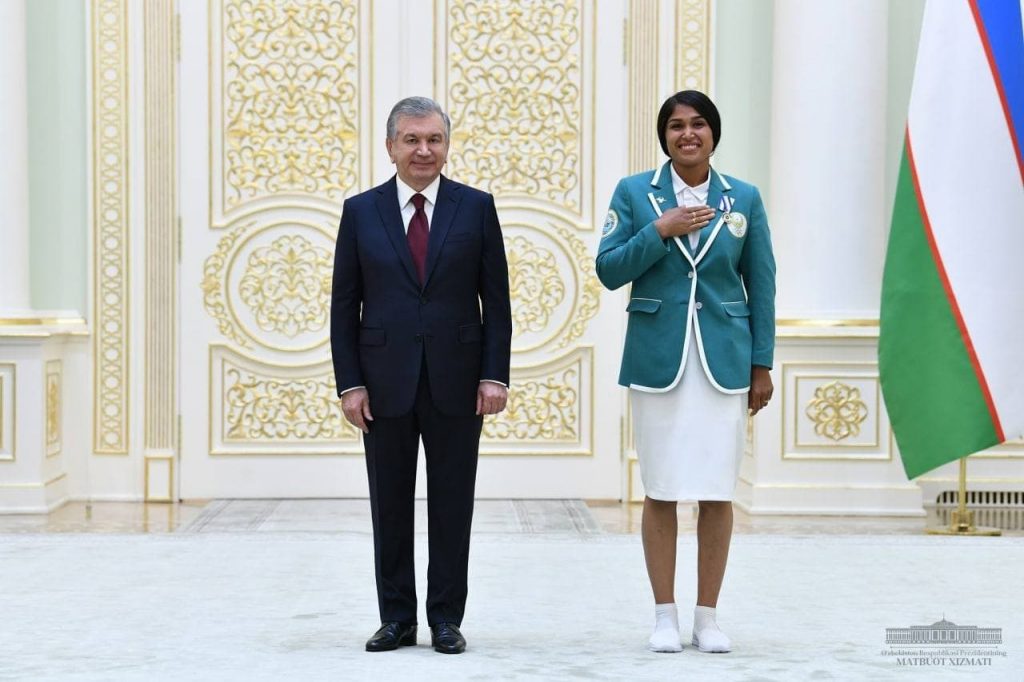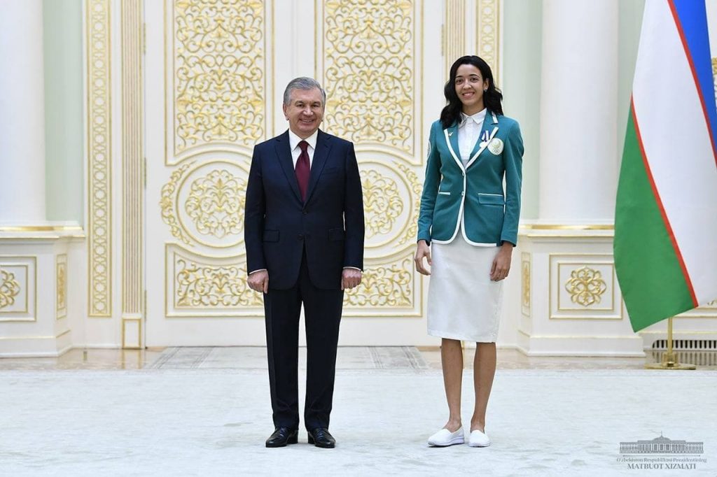 Давлатимиз раҳбари дунё миқёсида шуҳрат қозонган қаҳрамон спортчимиз Оксана Чусовитина ҳақида алоҳида тўхталиб ўтди. У спорт гимнастикаси бўйича кетма-кет 8 марта Олимпия ўйинларида қатнашган. Бу жаҳон спорти тарихида ноёб ҳодиса бўлиб, Гиннеснинг Рекордлар китобига киритилган. Шу боис унинг иштироки Токио Олимпиадасининг муҳим воқеаларидан бири сифатида эътироф этилди.