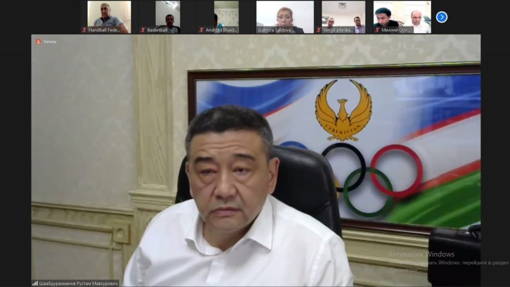 МОҚ раиси Рустам Шоабдураҳмонов бошчилигида Олимпия захираларини тайёрлаш тизимини янада кучайтириш мавзусида онлайн йиғилиш бўлиб ўтди. ZOOM платформаси орқали ўтказилган ушбу йиғилишда Қўмита Бош котиби Ойбек Касимов, спорт турлари бўйича федерация ва ассоциацияларнинг мутасадди раҳбарлари иштирок этишди.