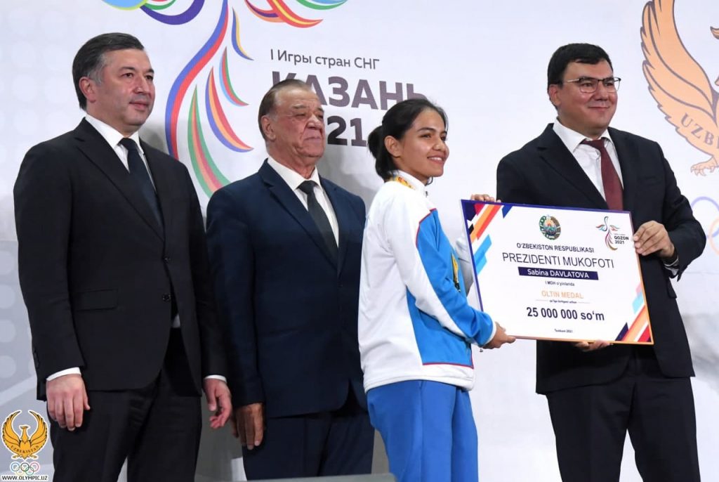 Шундан сўнг биринчи МДҲ ўйинларида ғолиб ва совриндор бўлган спортчиларимизга Ўзбекистон Республикаси Президенти совғаси топширилди. Унга кўра, мусобақада олтин медалга сазовор бўлган спортчиларга 25 миллион, уларнинг устозларига 12.5 миллион, кумуш медаль соҳибларига 15 миллион ва уларнинг тренерларига 7.5 миллион, бронза медали эгаларига эса 10 миллион, уларни тарбиялаган мураббийларига 5 миллион сўмдан пул мукофотларининг сертификатлари топширилди. Эстрадамизнинг бир қатор ёрқин вакиллари ижросидаги куй-қўшиқлар тантанали маросимга ўзгача файз берди.