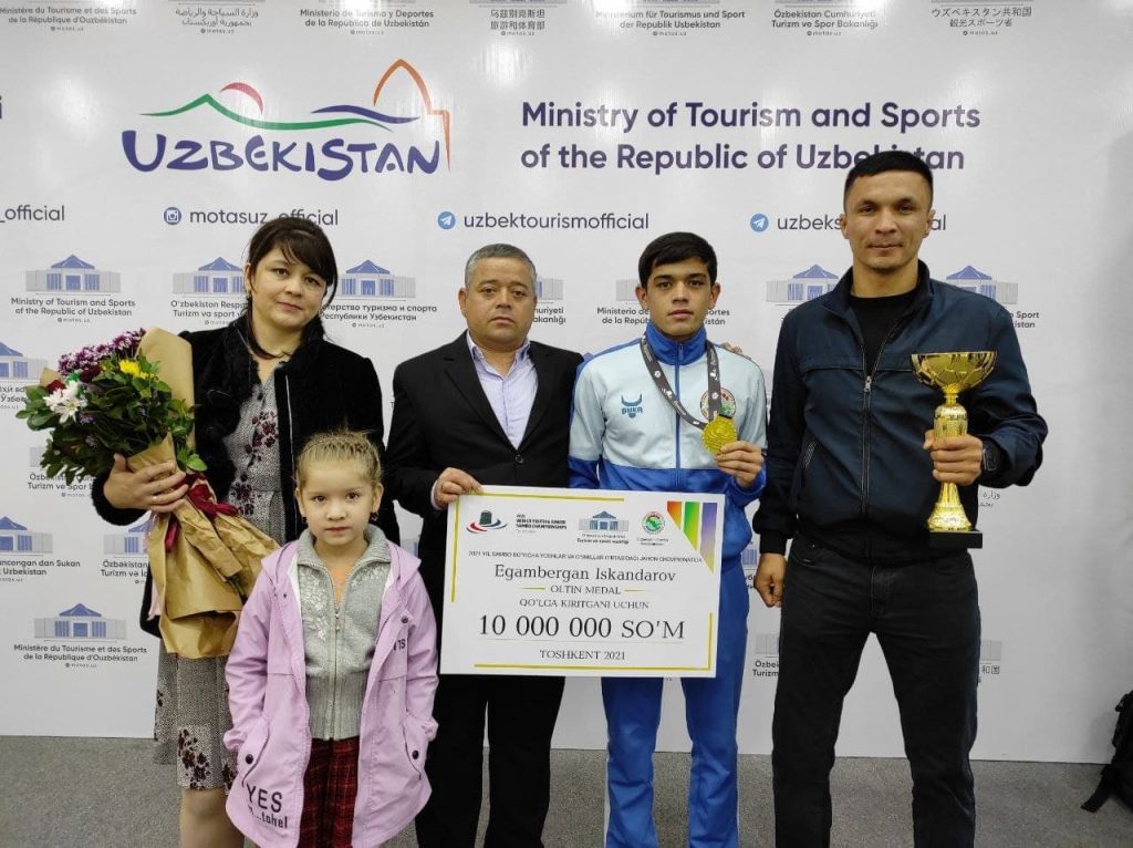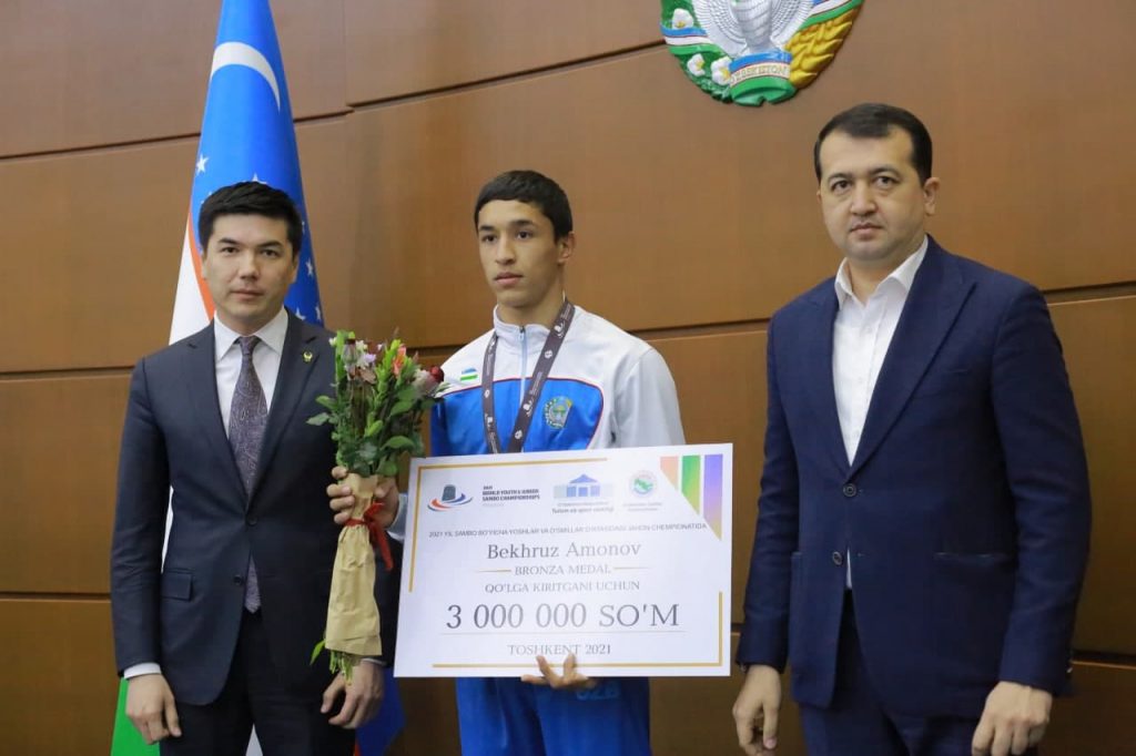 Тадбирнинг давоми Туризм ва спорт вазирлигининг биносида ўтказилди. Унда Аваз Каримов ва Ойбек Касимов сўз олиб, жамоамизни қўлга киритилган оламшумул натижа билан қутлашди. Шундан сўнг спортчиларимизга пул мукофотларининг сертификатлари топширилди. Унга кўра, олтин медаль эгалари 10 млн, кумуш медаль соҳиблари 5 млн ва бронза медалини қўлга киритган самбочиларимиз 3 млн сўмдан бир марталик пул мукофотлари билан тақдирланишади.