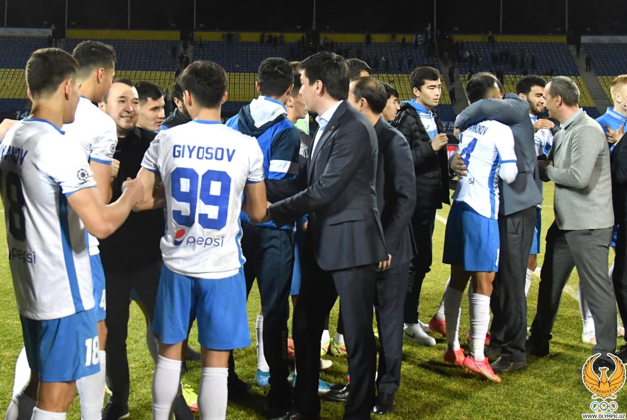 Бугун МОҚ қошида ташкил этилган “Олимпик” клуби дебют мавсумидаёқ Суперлига йўлланмасини қўлга киритиб, кўплаб мухлисларнинг олқишига сазовор бўлди. “Машъал»га қарши ўйинда гарчи биринчи бўлиб қашқадарёликлар ҳисобни очишган бўлсалар ҳам, Темур Кападзе шогирдлари жанговор ҳарактер билан баҳс тақдирини ўз фойдаларига ҳал қилишди. Эътиборингизга илк бор қуйи лига жамоаси ўтиш ўйинида элита босқич вакилини мағлуб этган учрашувдан суратларни ҳавола қиламиз: