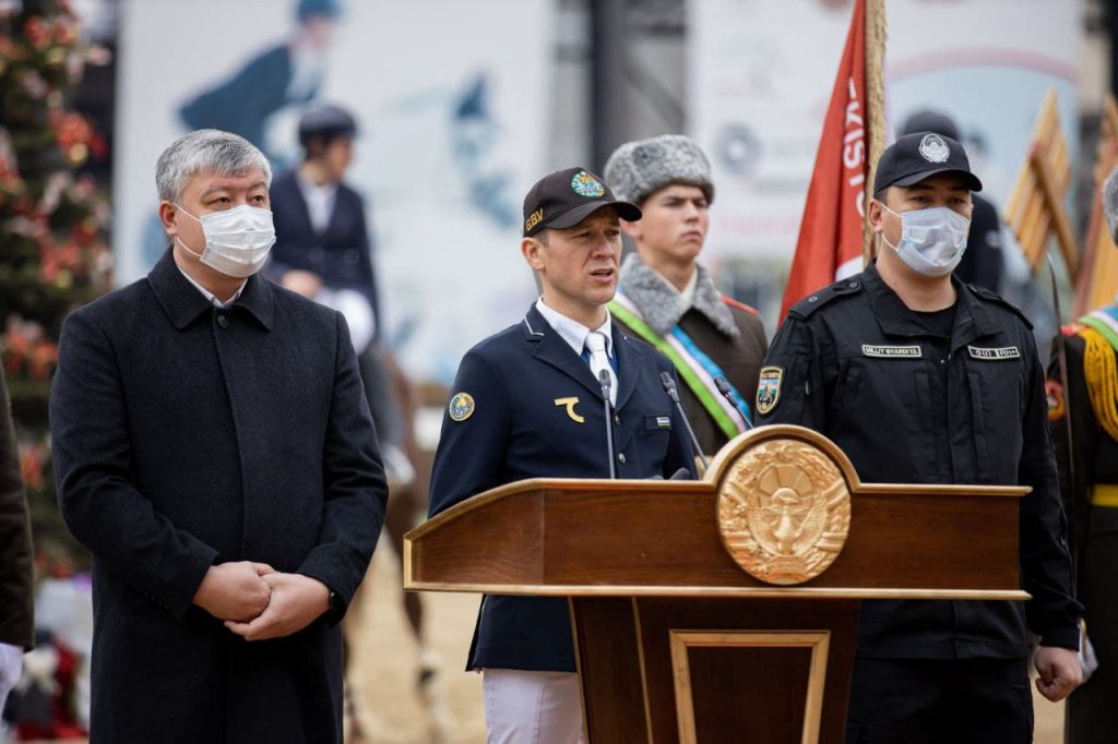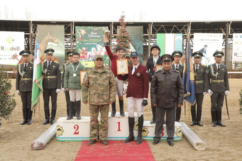 Конкур бўйича “Uzbekistan Global Tour 2021” мусобақаси якунланди View Larger ImageҲар йили анъанавий тарзда ўтказиб келинадиган от спортининг конкур йўналиши бўйича 10 босқичдан иборат бўлган “Uzbekistan Global Tour 2021” мусобақаси ўз якунига етди. Йил давомида ўтказилган мусобақада Республикамизнинг турли ҳудудларидан пойтахтга ташриф буюрган сара чавандозлар ғолиблик учун баҳс олиб боришди. Якуний босқич ниҳоясига етгач, ҳар бир йўналиш бўйича тўпланган очколар сарҳисоб қилинди ва ўз дастуридаги ғолиблар аниқланди. Эътиборингизга мусобақанинг якуний босқичи ва ҳар бир йўналишдаги чемпионлар номини ҳавола қиламиз: “А” тоифаси: 1. Нуржан Туякбаев (Ланселотта) 2. Тимур Азизов (Бозарт Де Руе) “D” тоифаси: 1. Бекзод Қурбонов (Калимера) 2. Нуржан Туякбаев (Корадо) 3. Аъзам Тиллабоев (Контендер BS) “B” тоифаси: 1. Нуржан Туякбаев (Корнетта) 2. Хуршидбек Алимжонов (Лейман) 3. Саидамирхон Турғунбоев (Чаман BS) “Uzbekistan Global Tour 2021” турнирининг якуний ғолиблари: “А” тоифаси: Нуржан Туякбаев 269 балл “В” тоифаси: Нуржан Туякбаев 229 балл “D” тоифаси: Бекзод Қурбонов 256 балл Мусобақанинг тақдирлаш маросими ҳам кўтаринки руҳда ўтиб, унда Ўзбекистон Республикаси Мудофаа вазирининг ўринбосари Алишер Норбоев ҳам иштирок этди. Шунингдек, вазирлик қошидги ҳарбий оркестр вакилларининг куйлари маросимга ўзгача шукуҳ бериб турди.