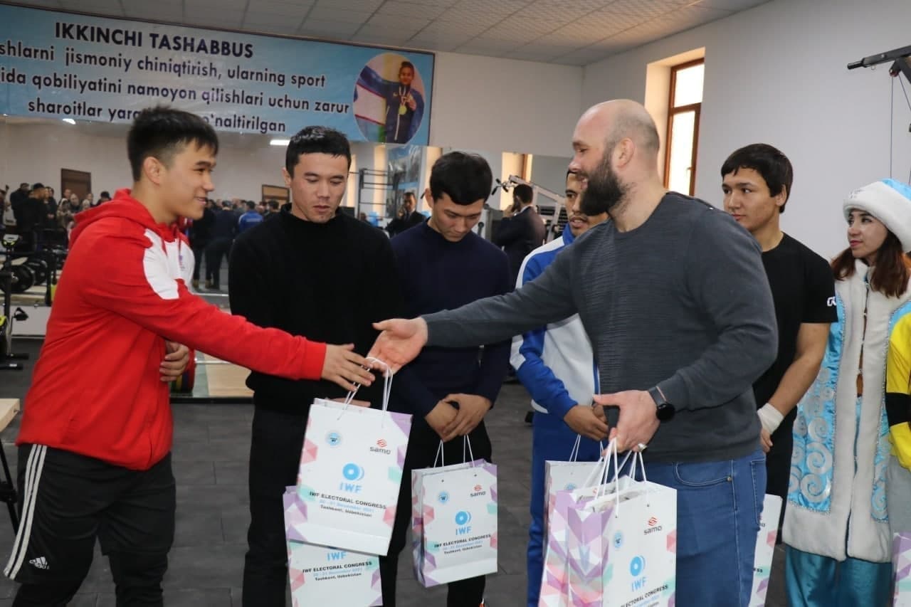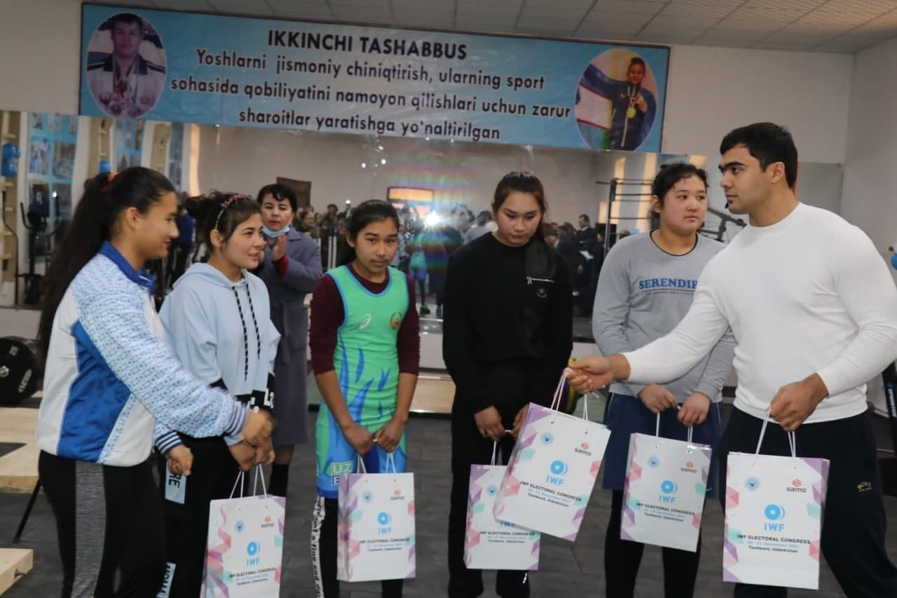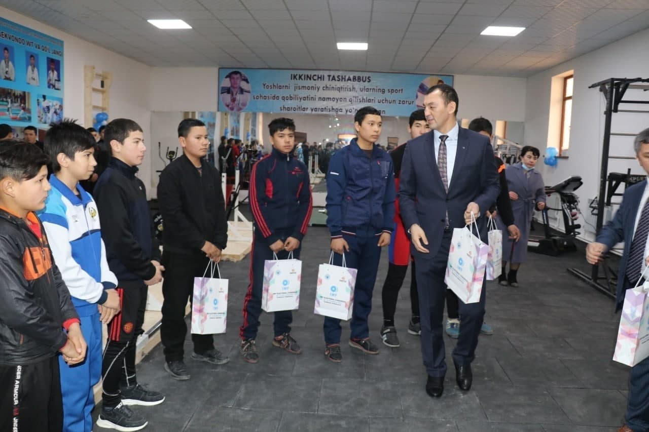 Туман ҳокимияти ташаббуси билан қурилган ушбу залга Ўзбекистон оғир атлетика федерацияси керакли инвентарларни етказиб берди. Шунингдек, ушбу масканнинг очилишида хизмат қилган мутасадди раҳбар ва бошқа вакилларга федерациясининг эсдалик совғалари топширилди.